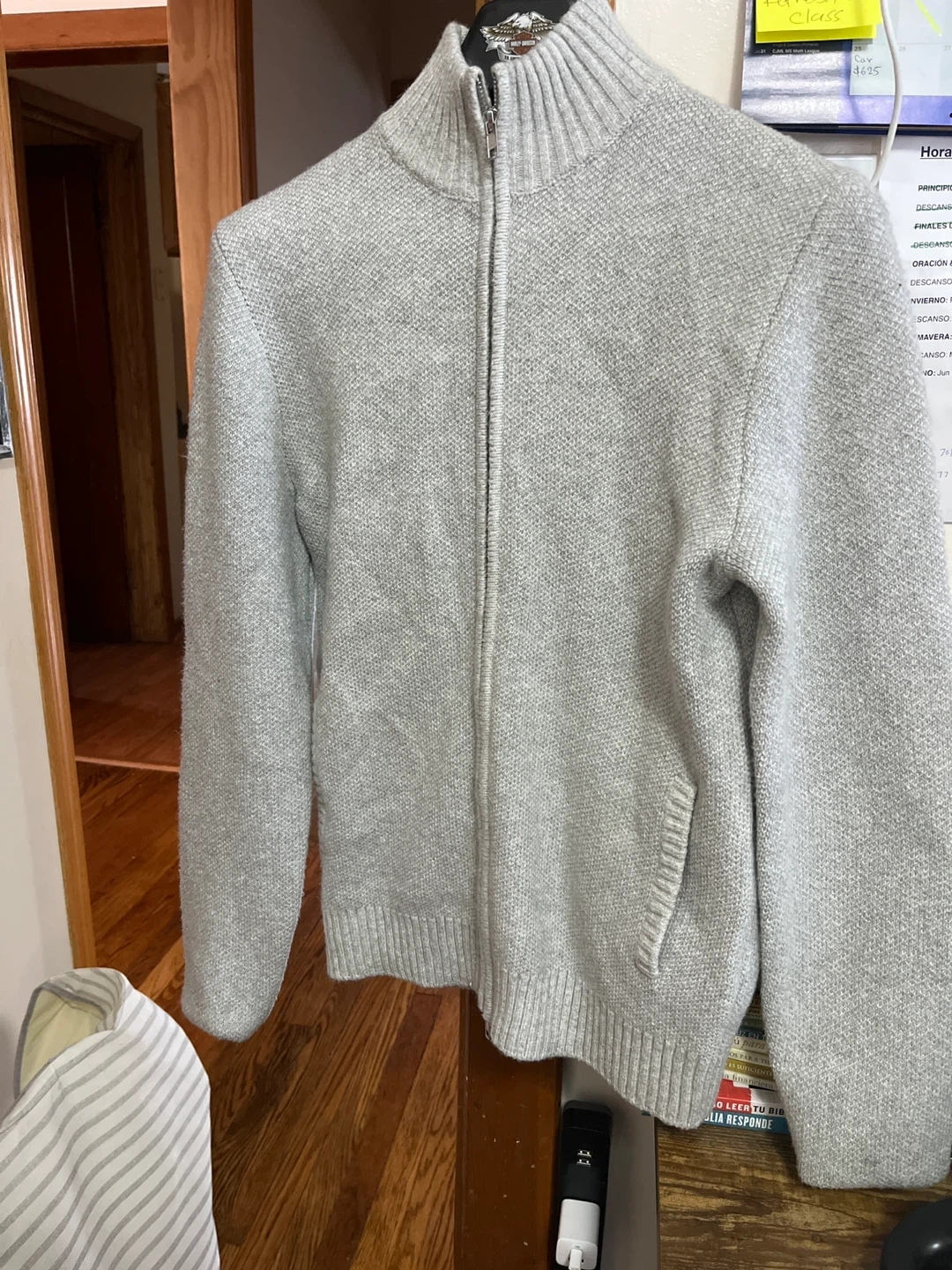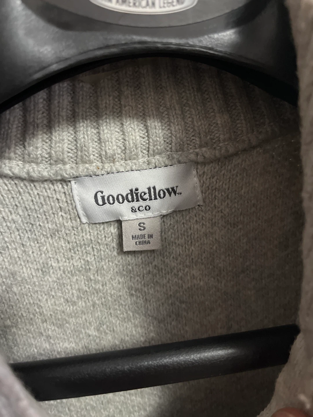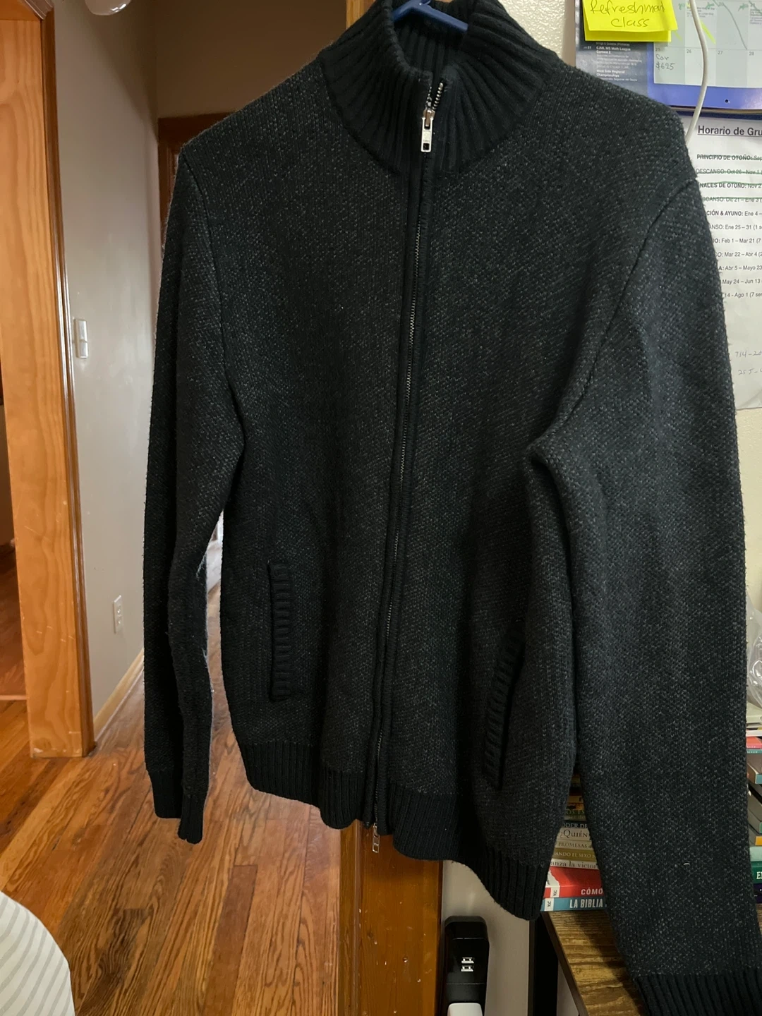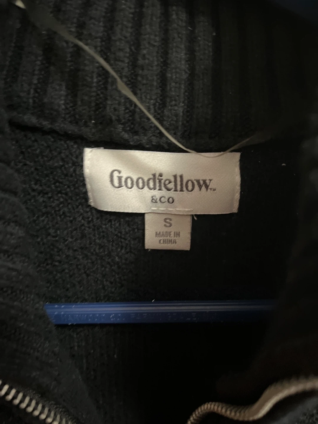 $12 each….This Goodfellow & Co. sweater features a full zip front and a mock neck. It's a size small with two front pockets. This knit jacket is great for layering during cooler weather.