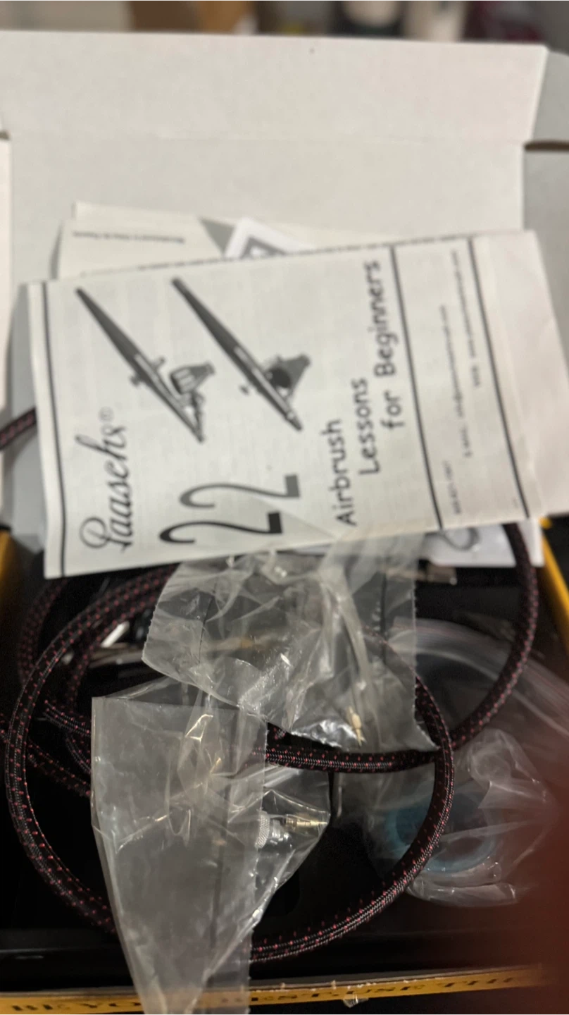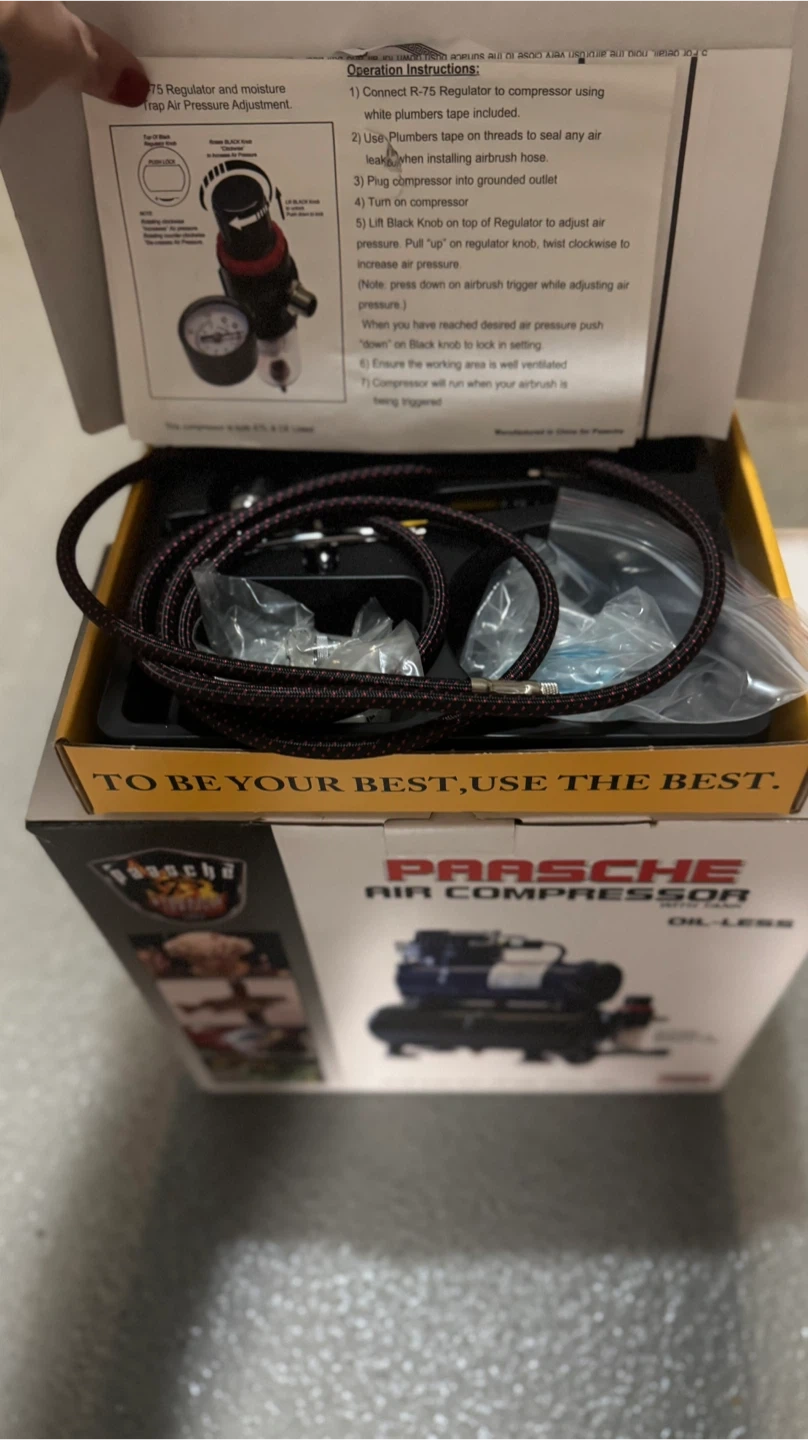 Selling a brand new Paasche Air Compressor, model D3000R. It's oil-less and comes with a tank. Never used. It's a 1/5 HP, 3-litre tank, and operates at 115 Volts, 1 phase, 60Hz. Includes a regulator and moisture trap. Ready to use for your airbrushing needs!