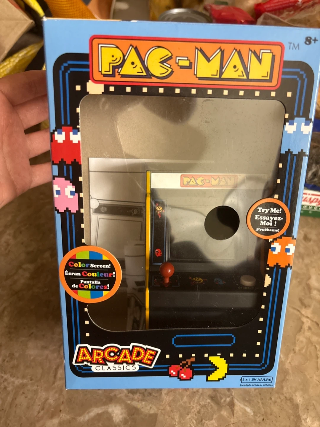 10Selling a mini Pac-Man Arcade Classics game! It has a color screen and is in great condition. Requires 3 x 1.5V AA/LR6 batteries (included). Perfect for some retro gaming fun!