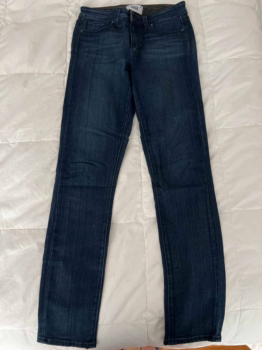 Selling a pair of Paige denim jeans in a dark wash. They are a size 25 and in great condition! Perfect for everyday wear.