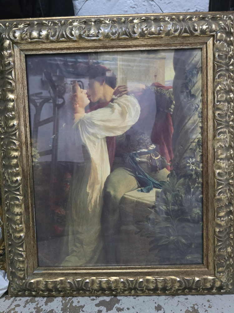 10Late 20th Century Romeo & Juliet Romantic Renaissance Painting on Canvas Framed Frank Dicksee 48"