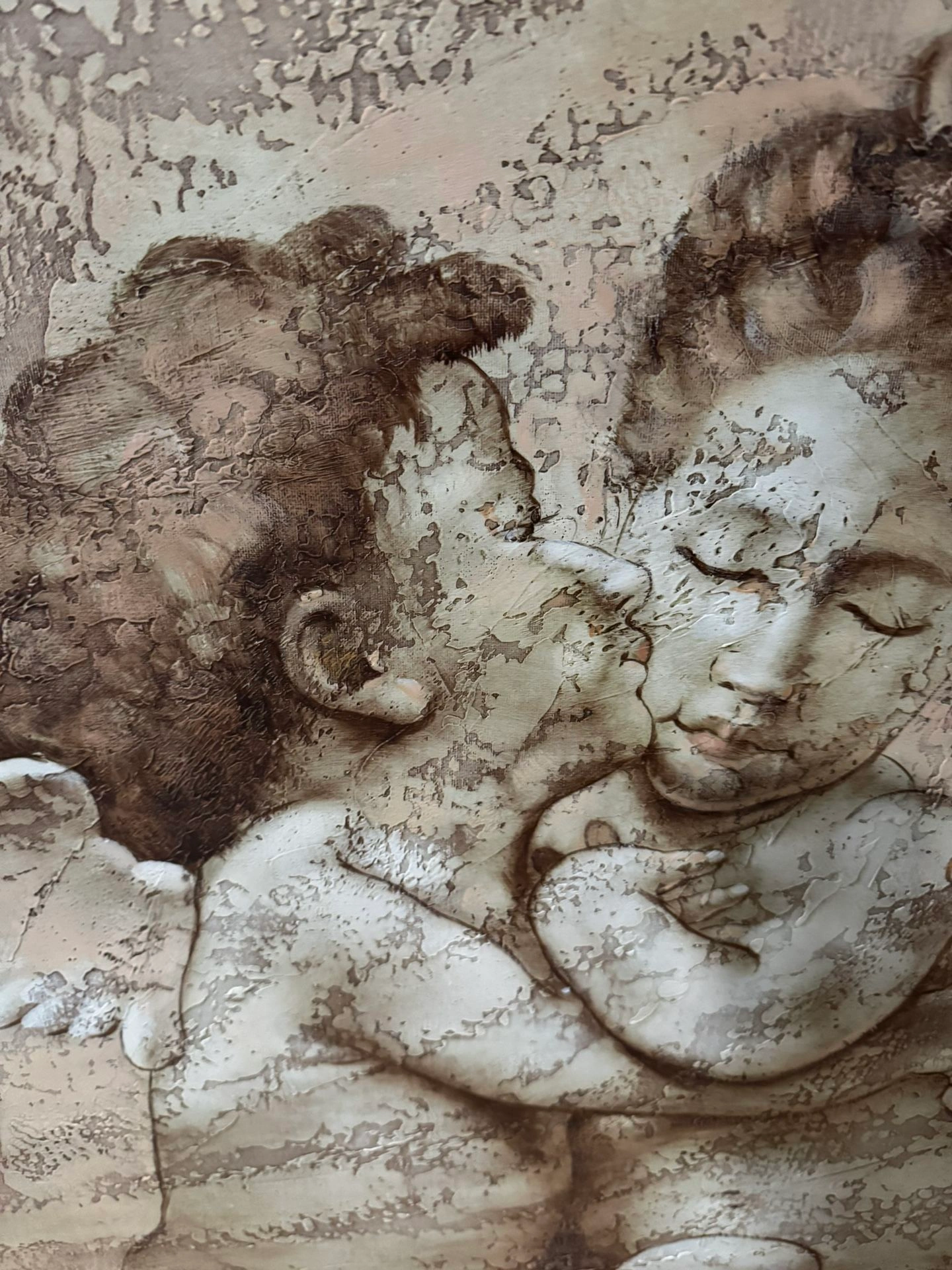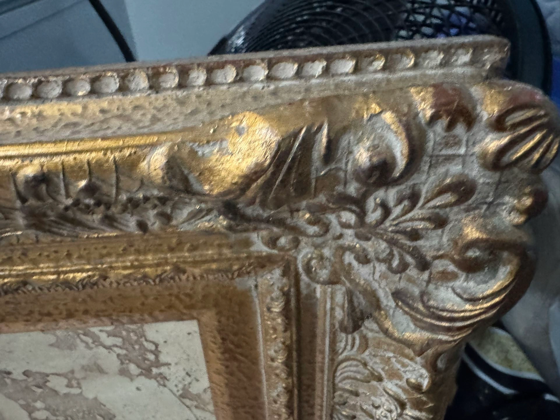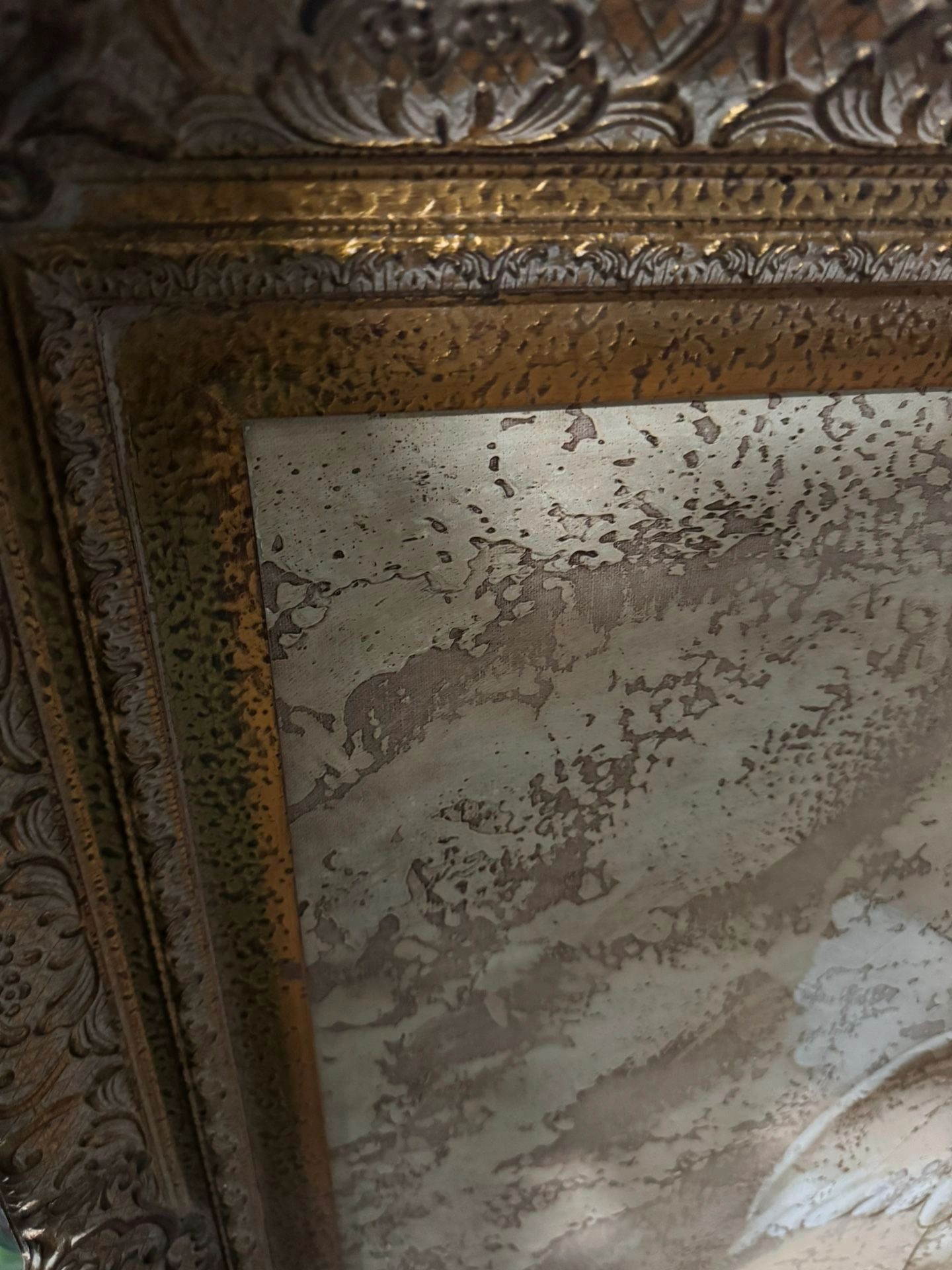 Textured Painting on canvas. Wood Gold Antique Frame collectible. Real paint not printed. Size: Large (up to 60in.) Color: Beige Style: Art Deco