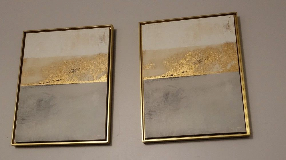 Sage green, gold, and ivory abstract painting set of 2. Orignal price $499.99. I am selling at $100 only