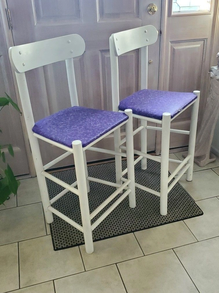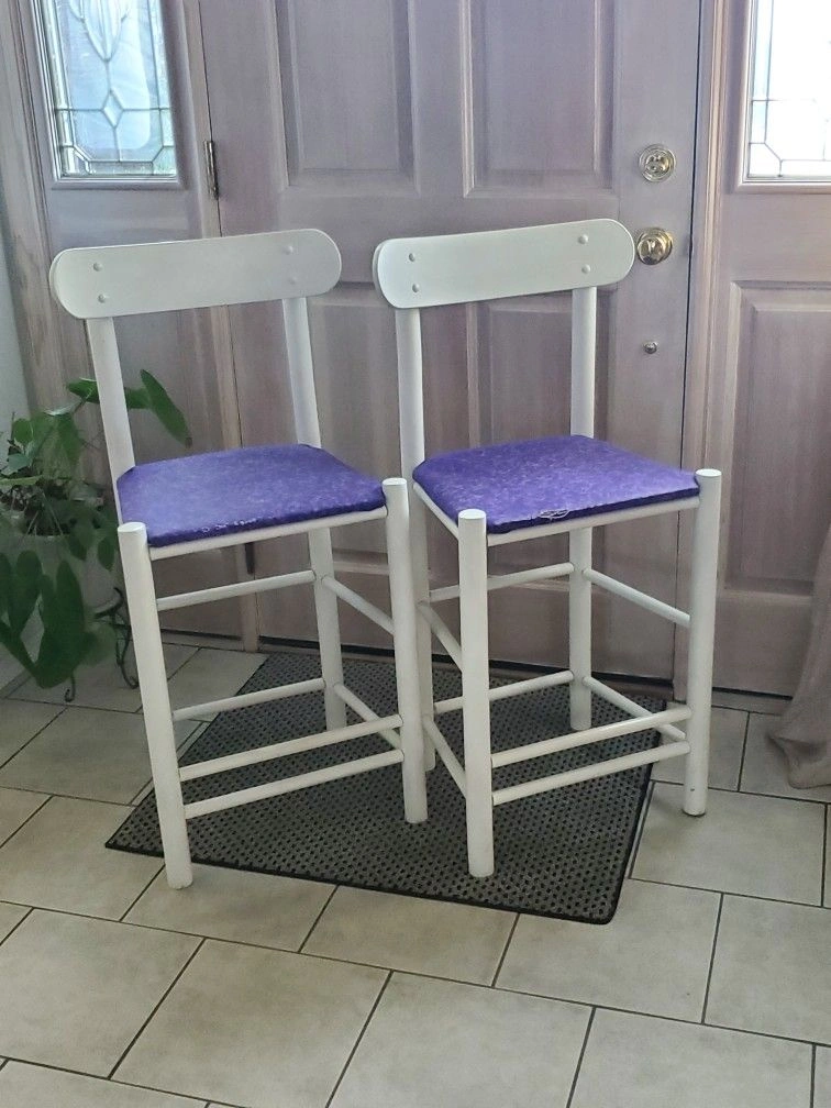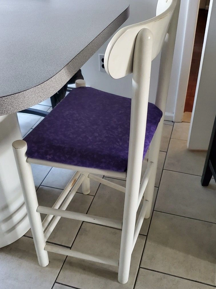 Very easy to change up the material on the cushion to anything that suits your taste. I have done it myself several times with $5 of material from Walmart. 24" high, cushion is 16" x 15" Color: White Material: Wood Item Height: 20-24 in Item Width: 12-19 in Item Depth: 12-19 in