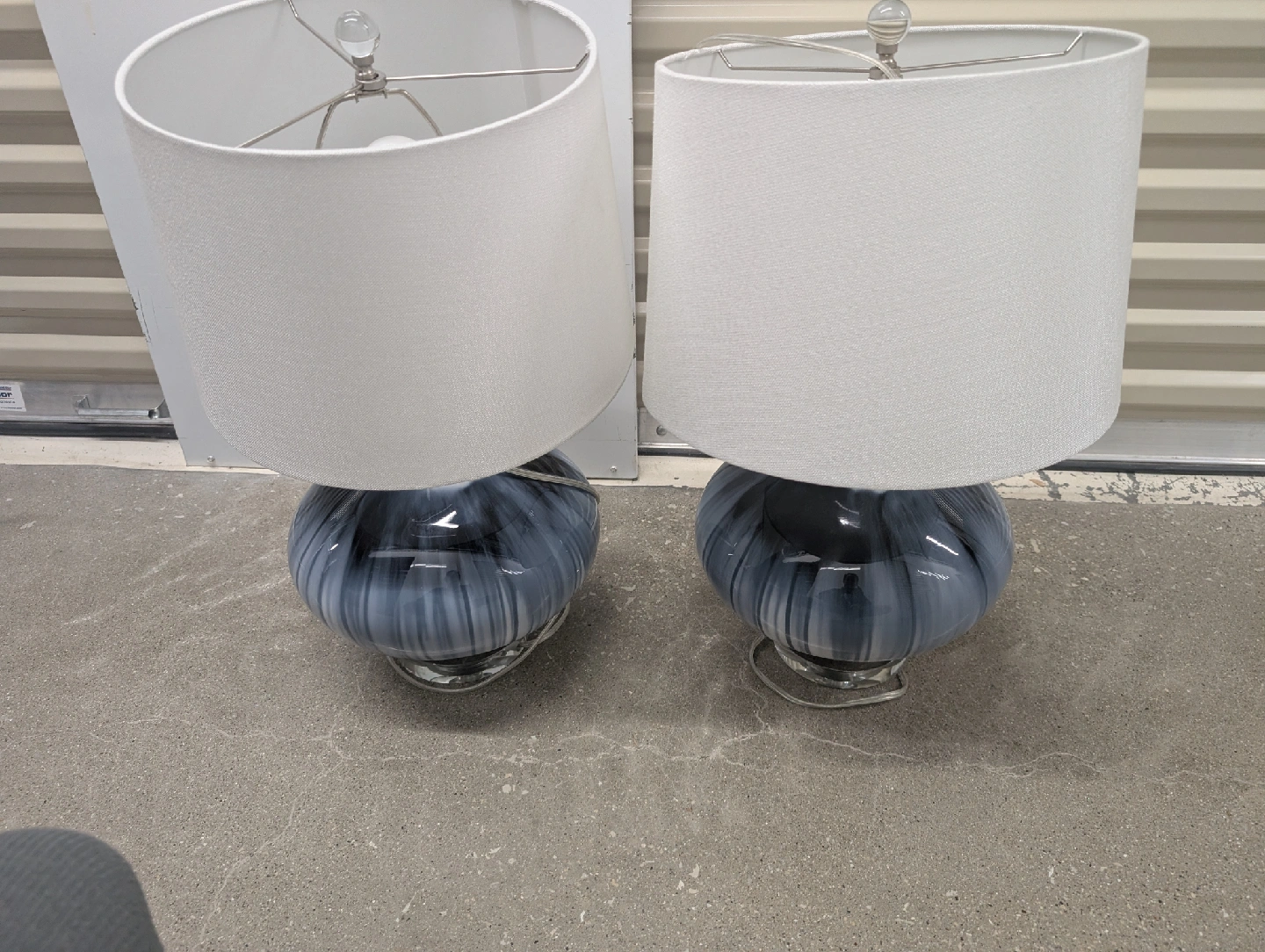 10Sagebrook Home Modern Glass 26" Reactive Table Lamps selling as a pair.They feature a lovely blue & white glass base and a white lampshade. These lamps would be a great addition to any room, adding a touch of elegance and soft lighting. Price is for both lamps.
