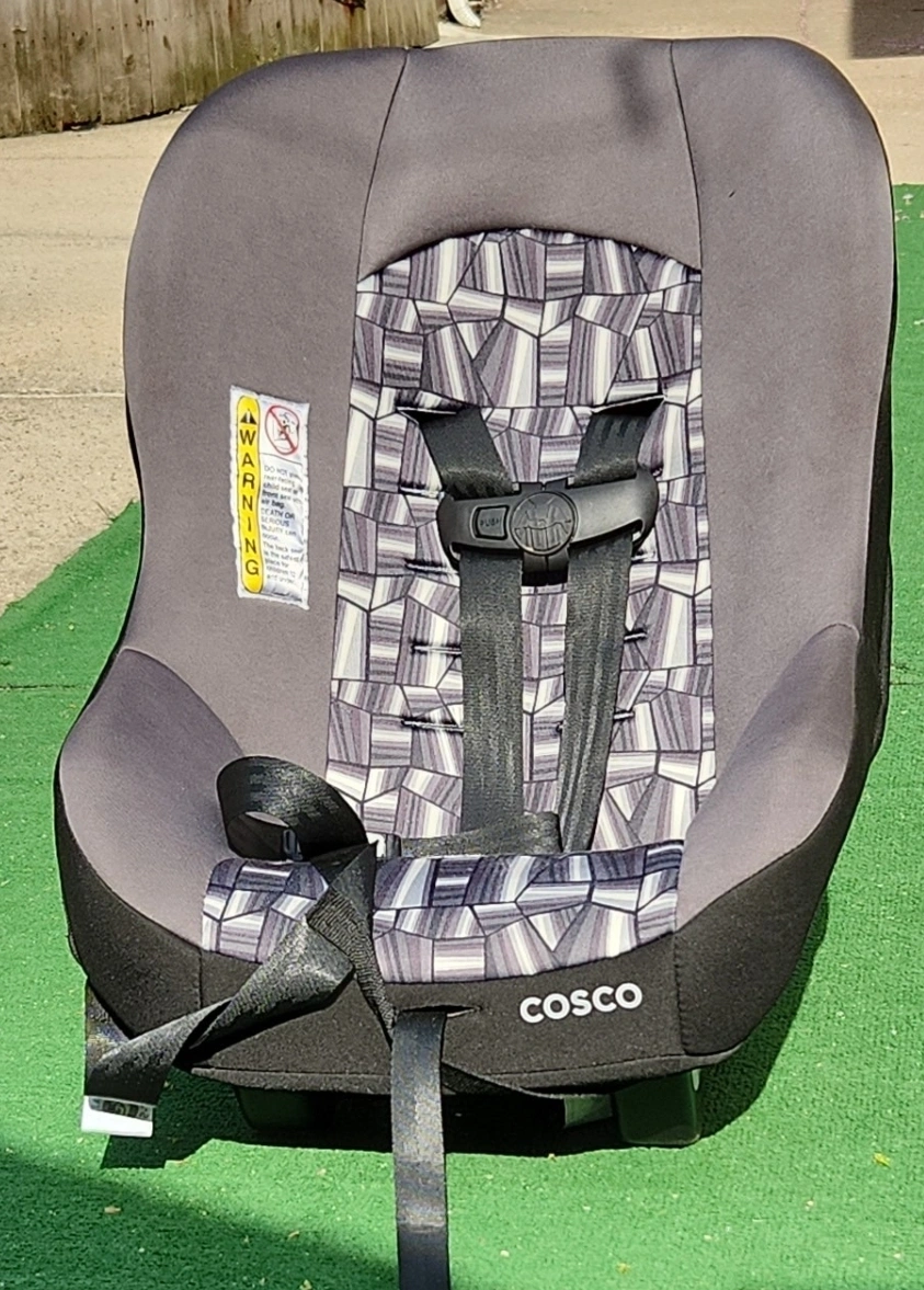 Two infant car seats, gray and black geometric pattern. Good used condition. Ready for your little one.