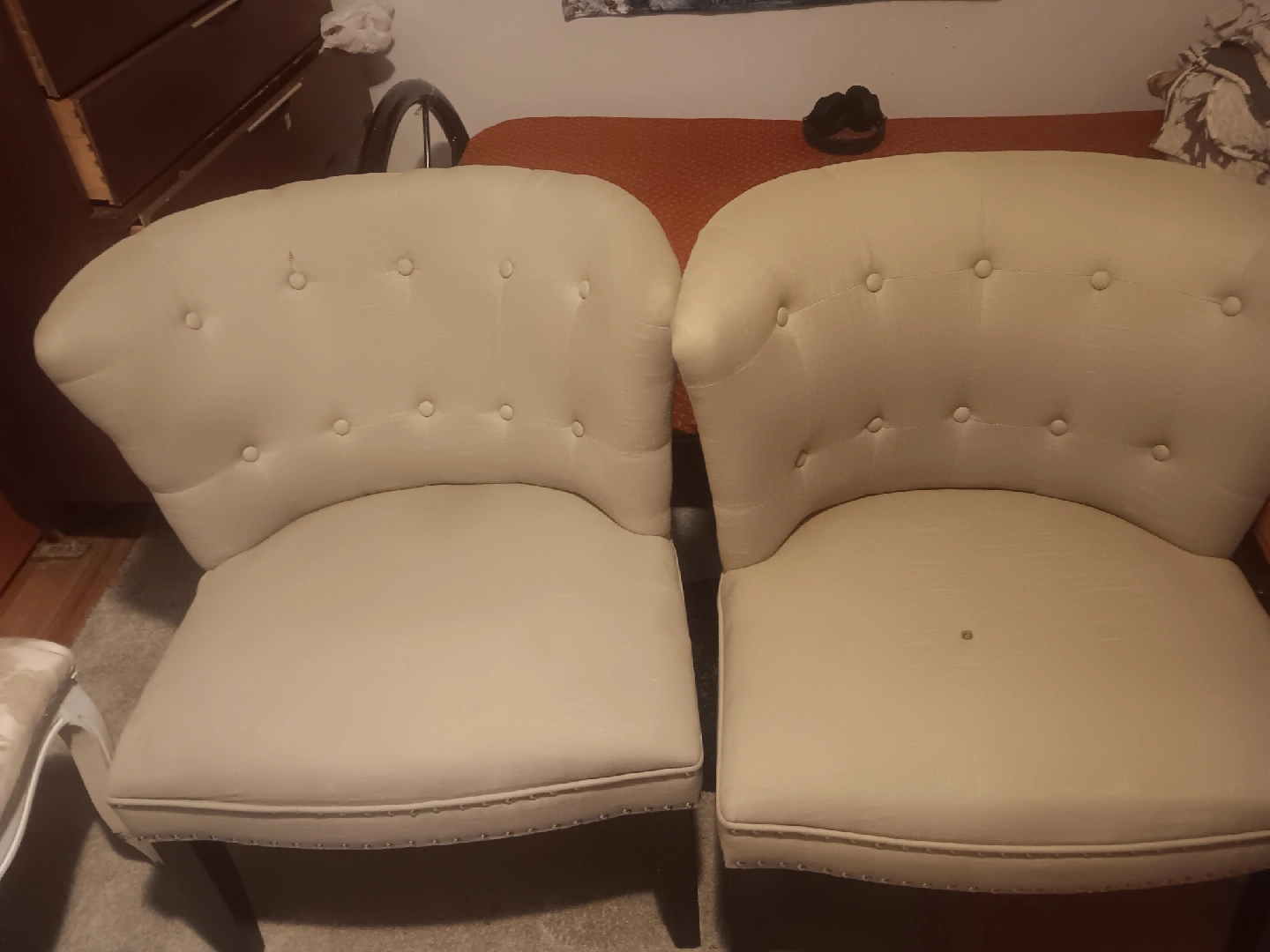25Selling a pair of upholstered accent chairs. They are in good condition and would look great in any living room or bedroom. Perfect for adding a touch of elegance to your space