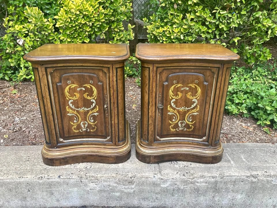 Pair of Drexel Heritage side tables. ✔️ Solid wood, built to last ✔️ Classic vintage design with storage drawer ✔️ Matching pair, rare to find together Condition: Good vintage shape, minor wear consistent with age. $275 for the pair. Pickup in Bloomfield, NJ