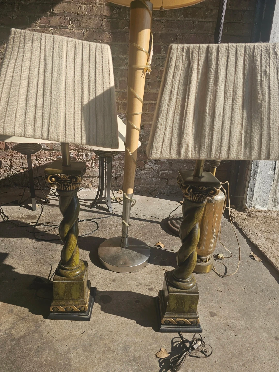 76Selling a pair of vintage lamps with a unique twisted column design. They have a classic look and would add a touch of elegance to any room. They show some signs of wear, but are still in good condition and fully functional. Perfect for adding a warm and inviting ambiance to your home!