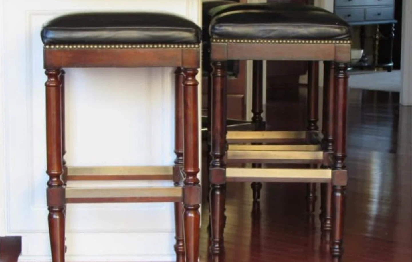 Selling a pair of wooden bar stools with black leather seats. They have a classic design and would look great in a kitchen or bar area! They are in good condition and ready for a new home Orginally $200