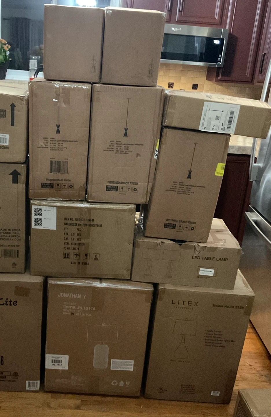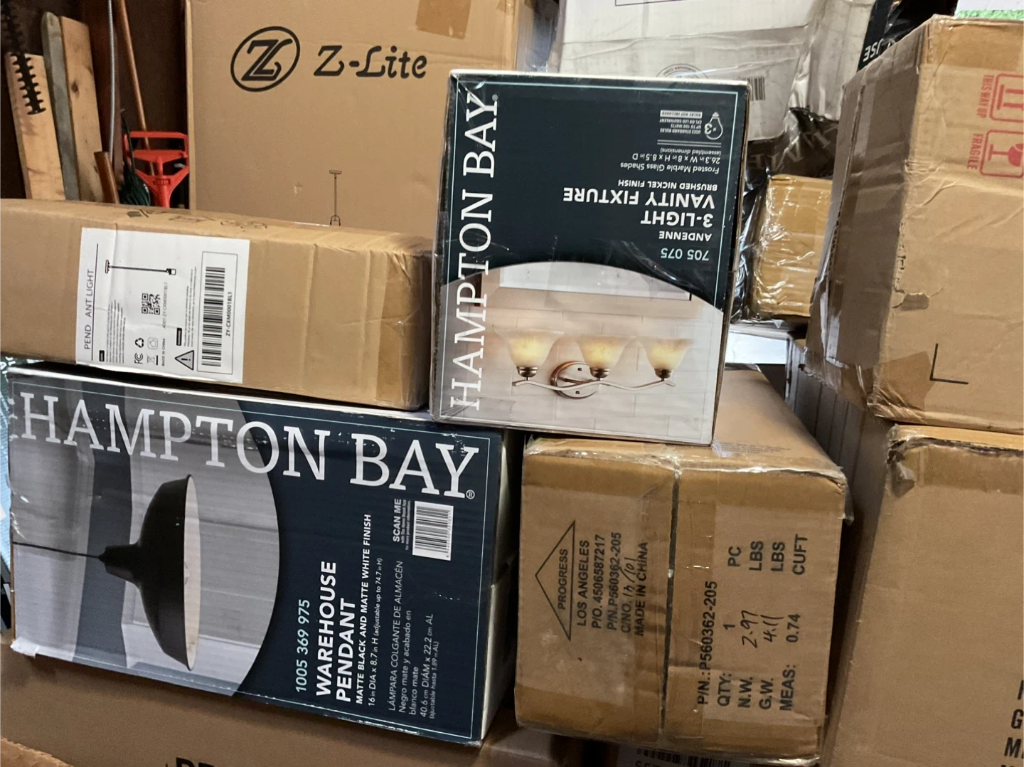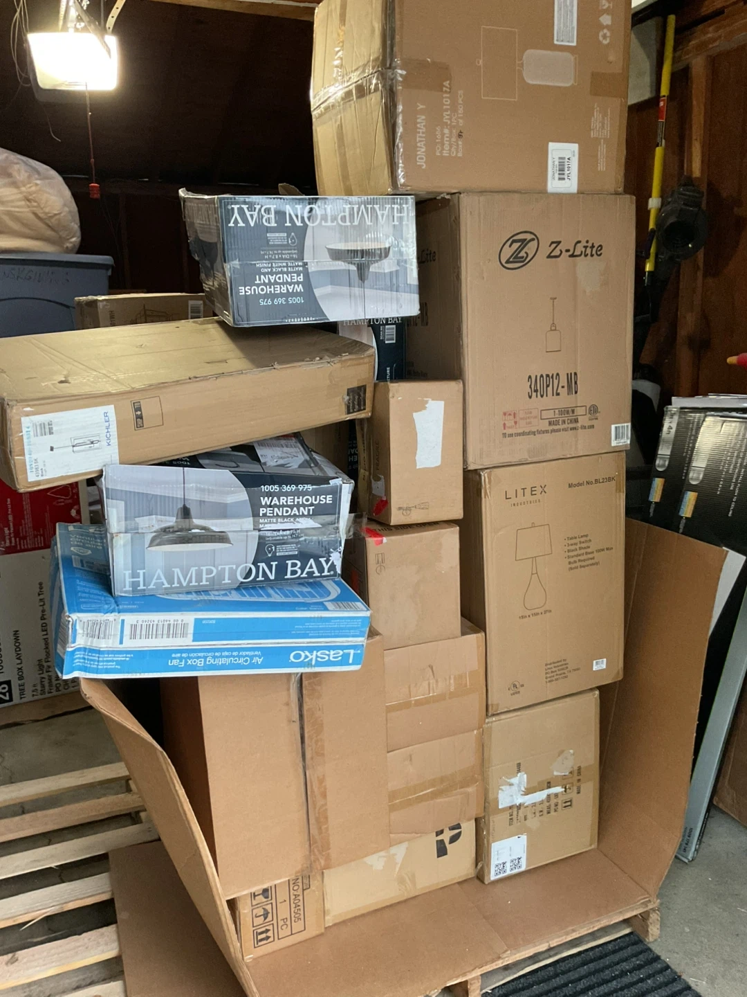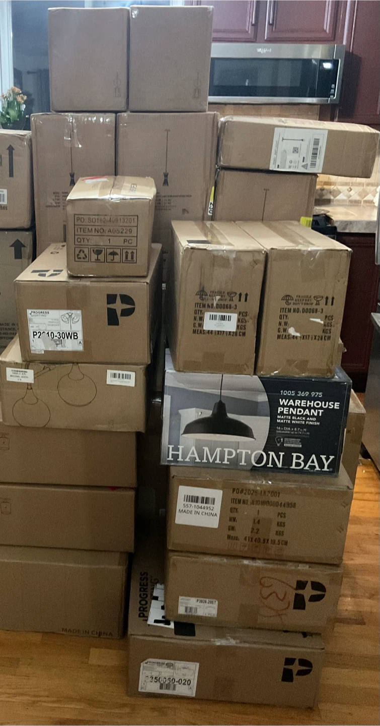 Pallet Liquidation Lamps, Light Fixtures, Wall Lanterns, Sconces, Vanity Lights, Pendants and much more. Many of the lights come in pairs or more of the same items. Some boxes are distressed but items are brand new. All Brand New - Opened box to inspect items Estimated 30-33 items
