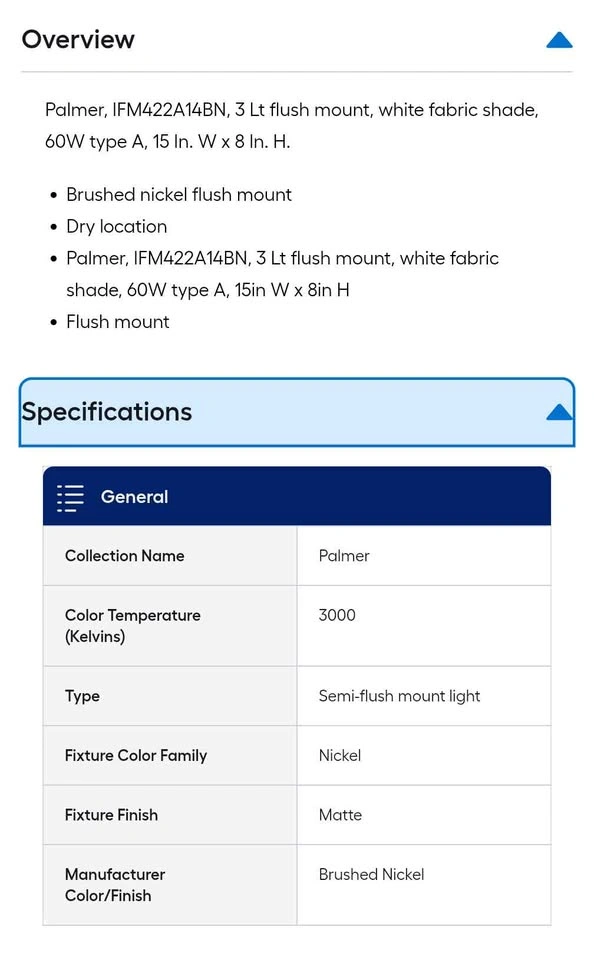 10Brand new in box Palmer, IFM422A14BN, 3 Lt flush mount, white fabric shade, 60W type A, 15 In. W x 8 In. H. $60.00 cash or Zelle Pickup in Lake Villa