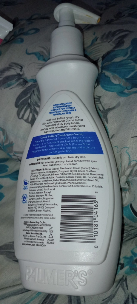75I'm selling Palmer's Cocoa Butter Formula with Vitamin E lotion. This lotion heals and softens dry skin, providing 48-hour moisture. It's dermatologist recommended and smooths marks and tones skin. Contains 400 ml / 13.5 fl oz ON DOOR CASH~BUNDLE DISCOUNT %~