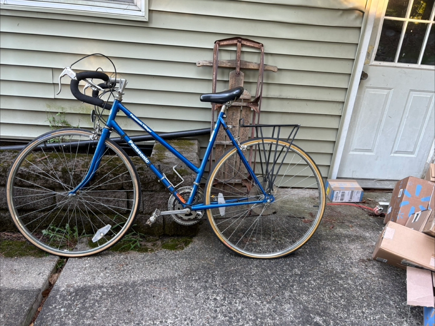 Selling a blue Panasonic road bike. It's in good condition and ready to ride!