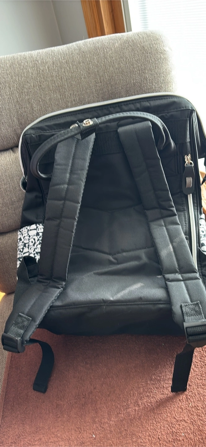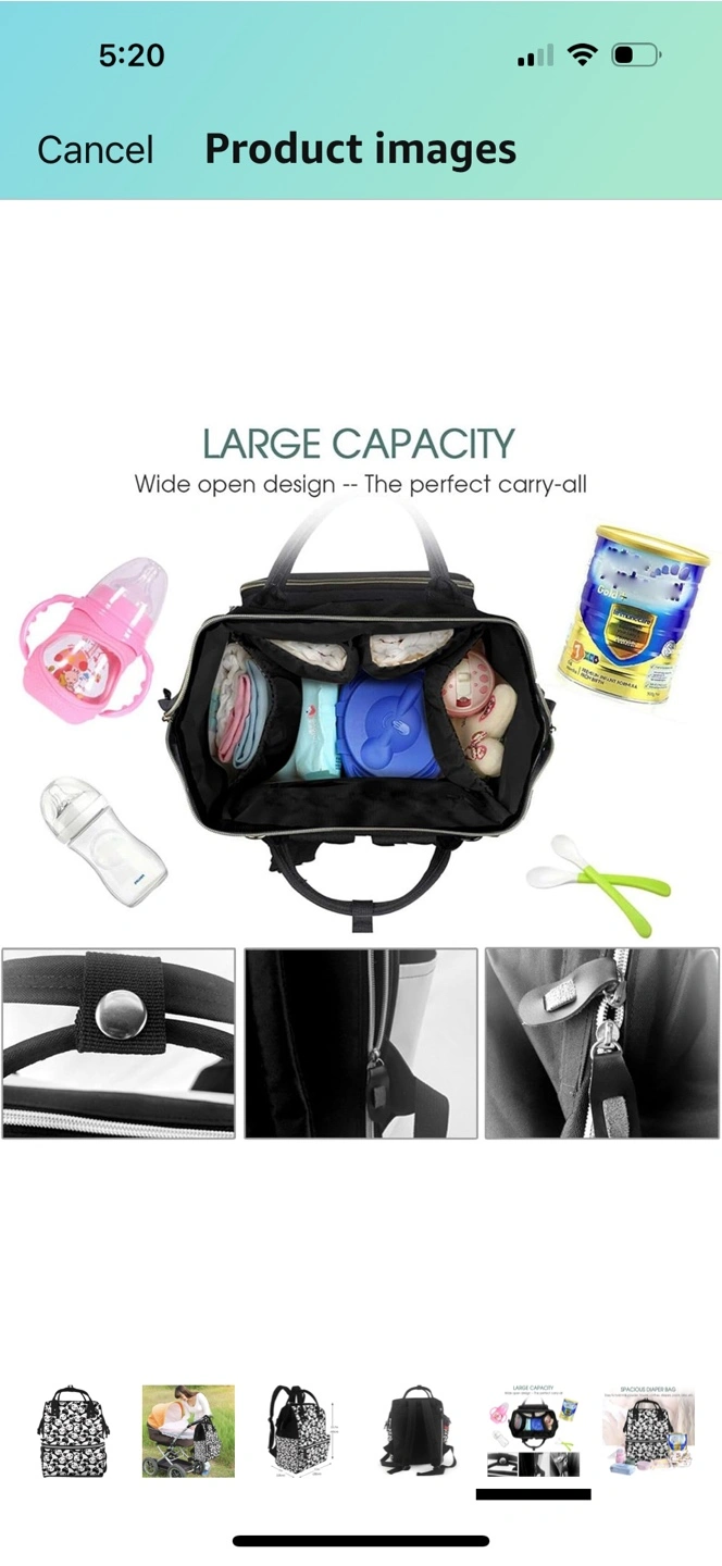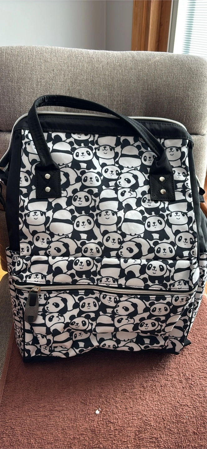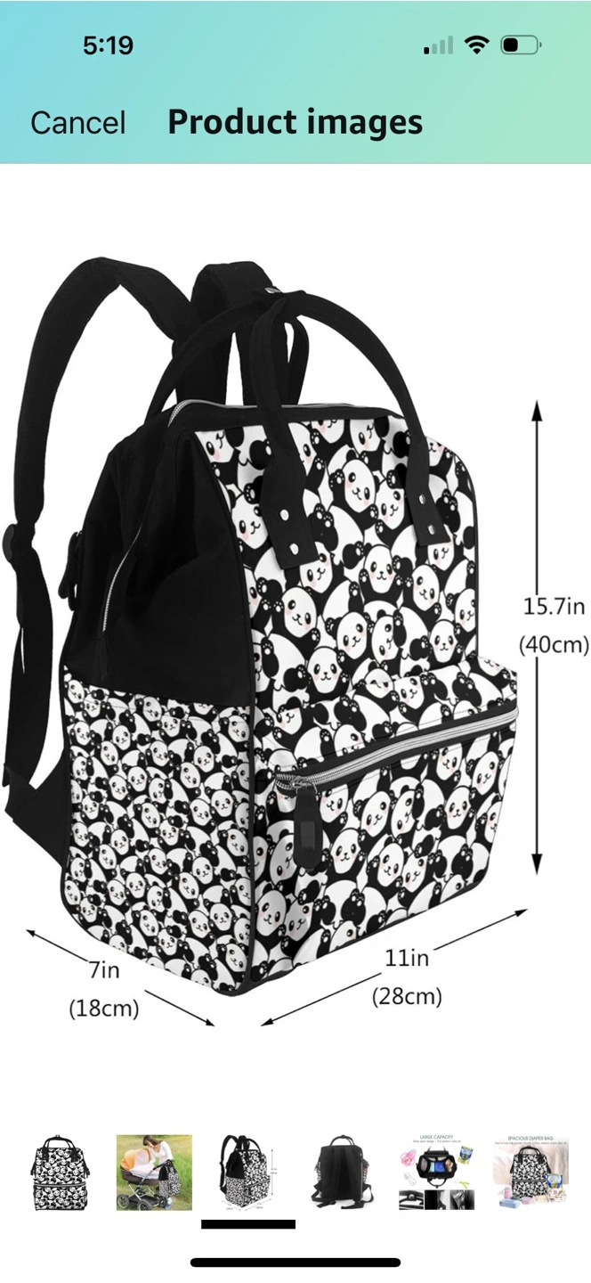 This is a large capacity diaper bag with a wide open design. It's perfect for carrying all of your baby's essentials. The dimensions are 15.7 inches (40cm) in height, 11 inches (28cm) in width, and 7 inches (18cm) in depth