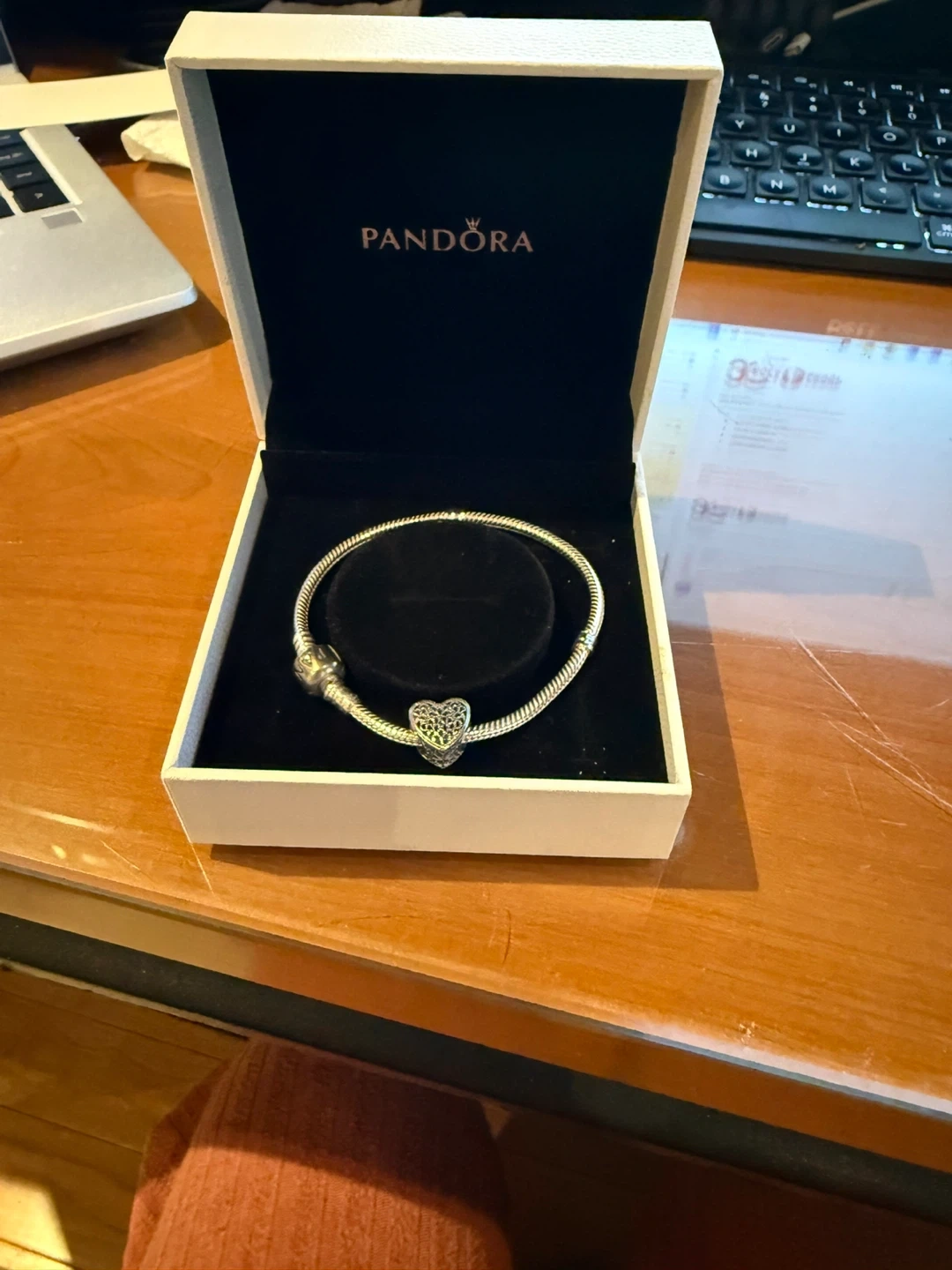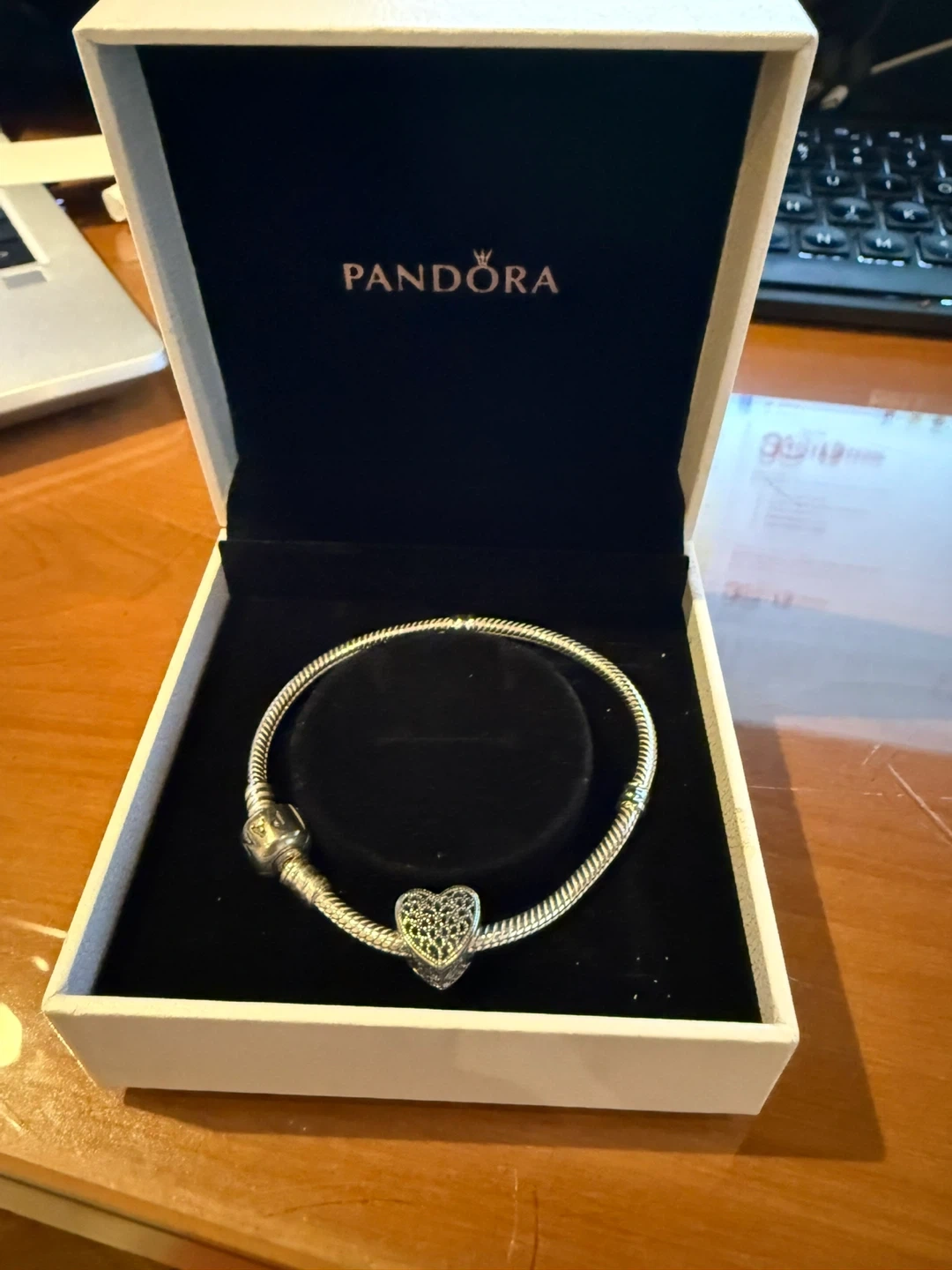 0Selling a beautiful Pandora charm bracelet! It comes with a lovely heart charm. The bracelet is in great condition and includes the original box. It's a perfect accessory for any occasion