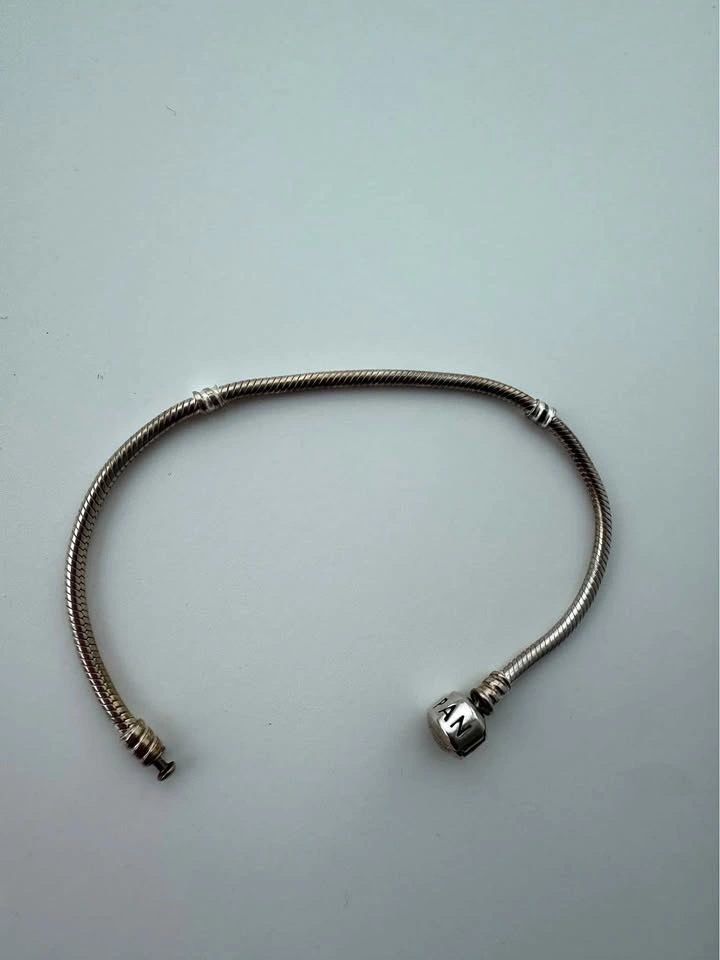 15Pandora moments silver snake chain bracelet Size 18cm Too big for me, so I don’t wear it. Needs a good polish