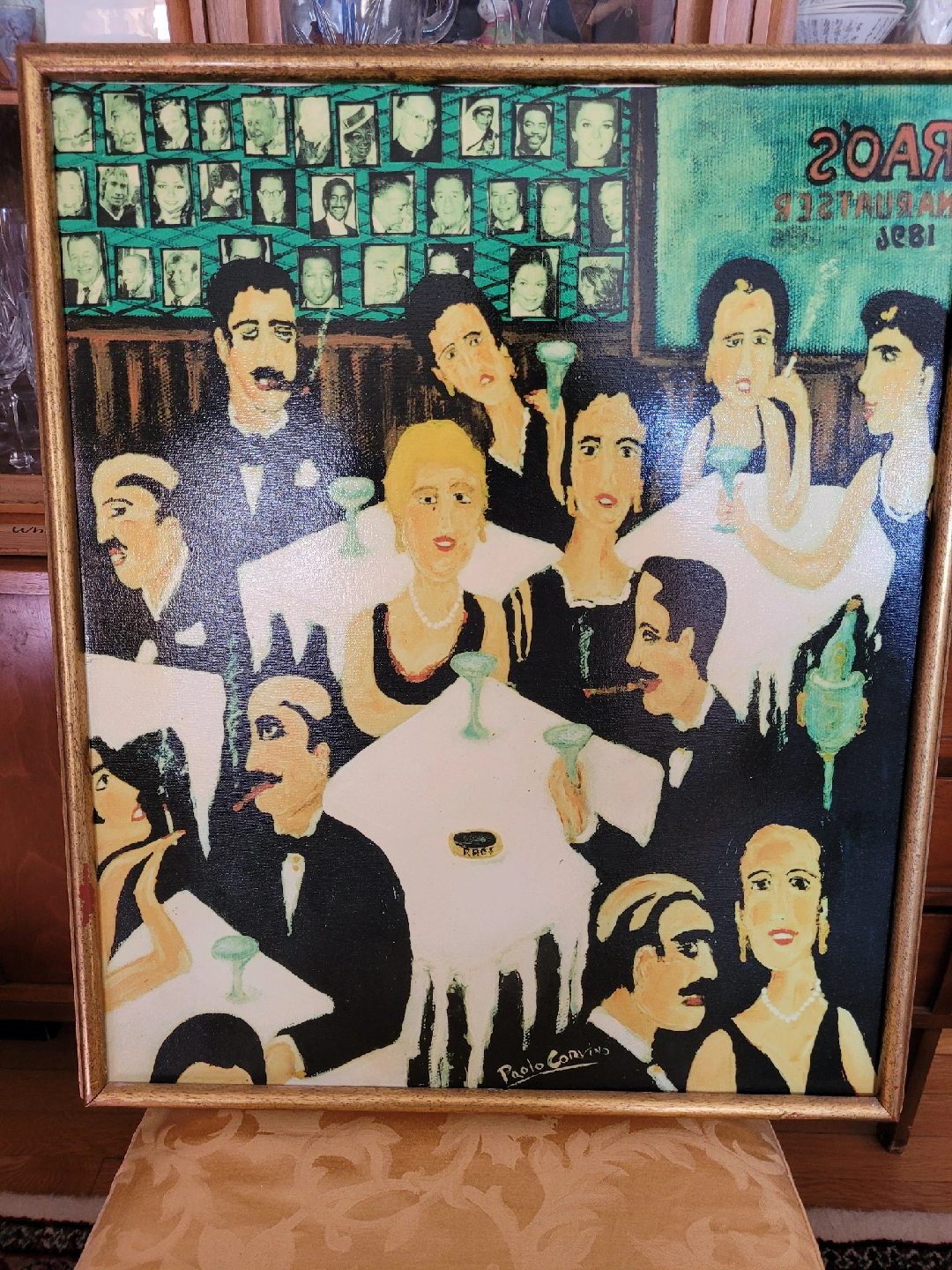 20oil painting by Paolo Corvino. patrons dining at Raos Restaurant NYC