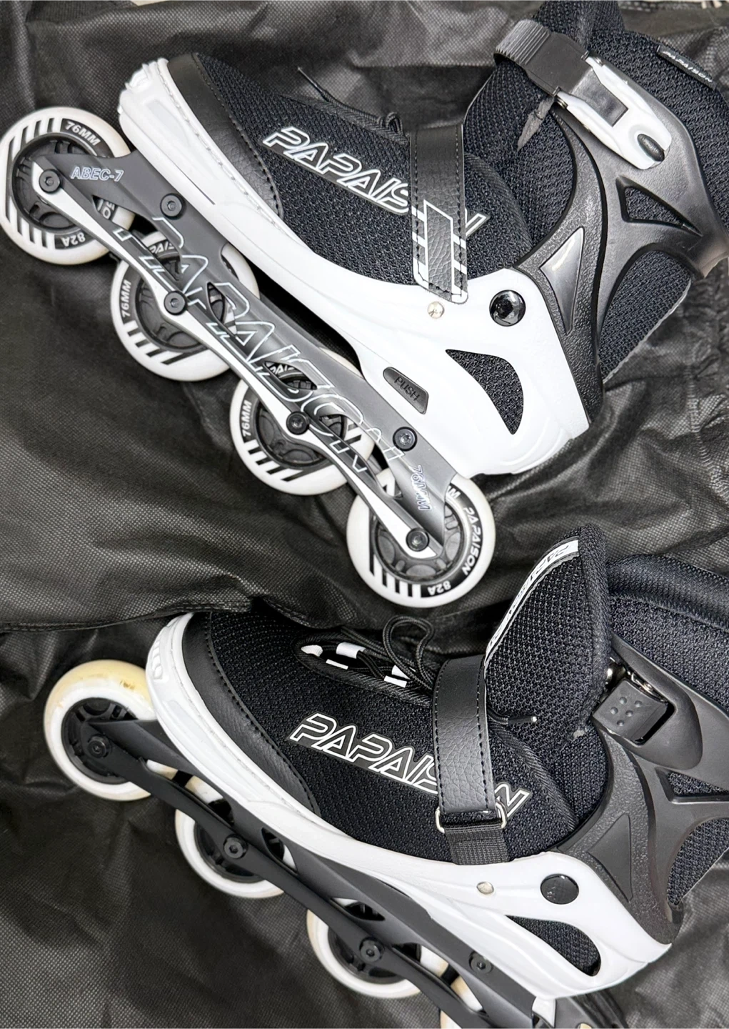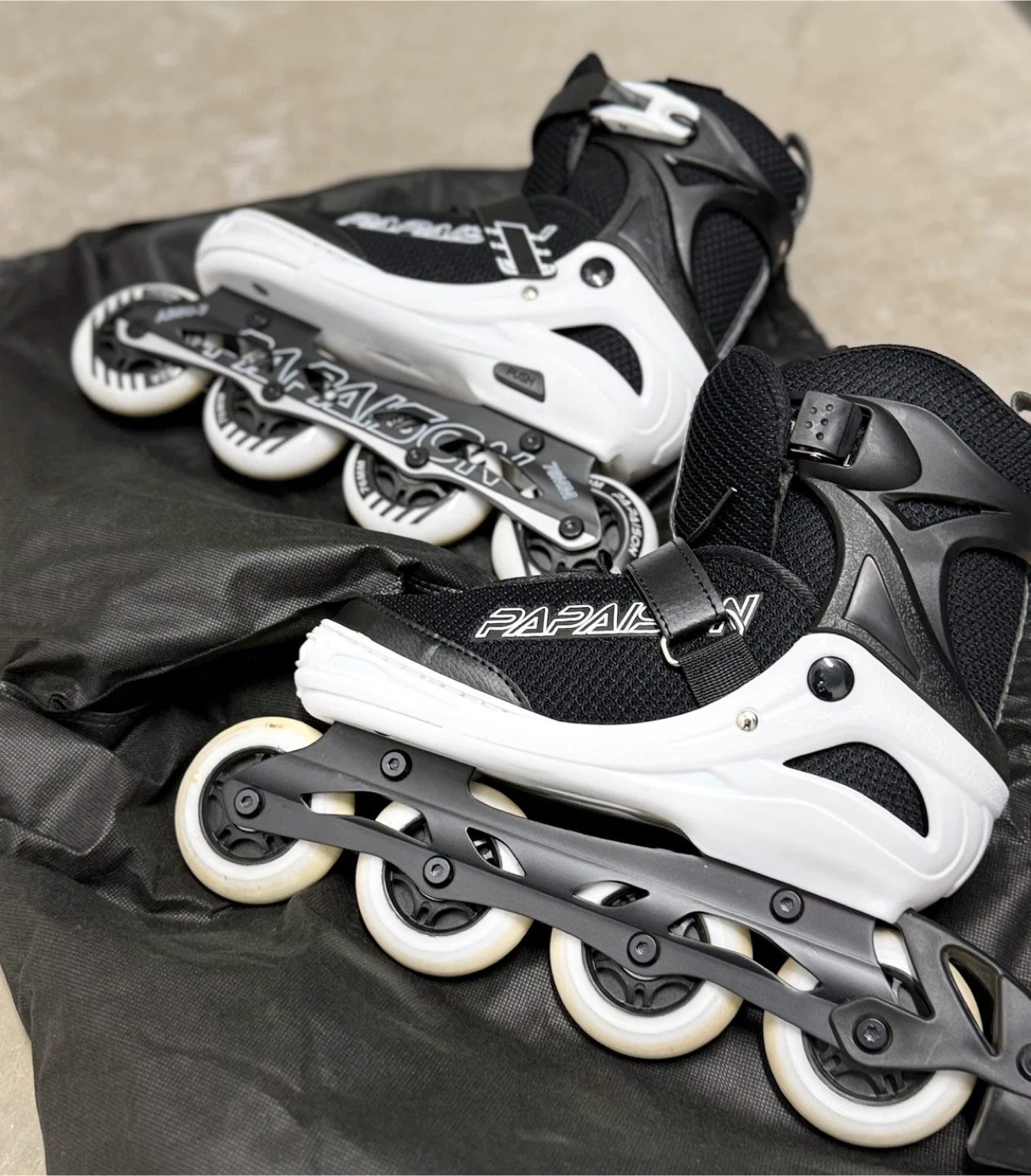 Selling a pair of PAPASON roller blades in black and white. They appear to be in good condition and ready for some fun skating!