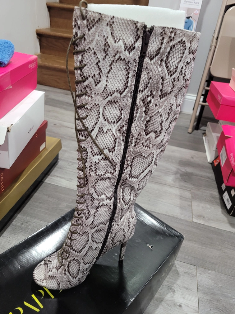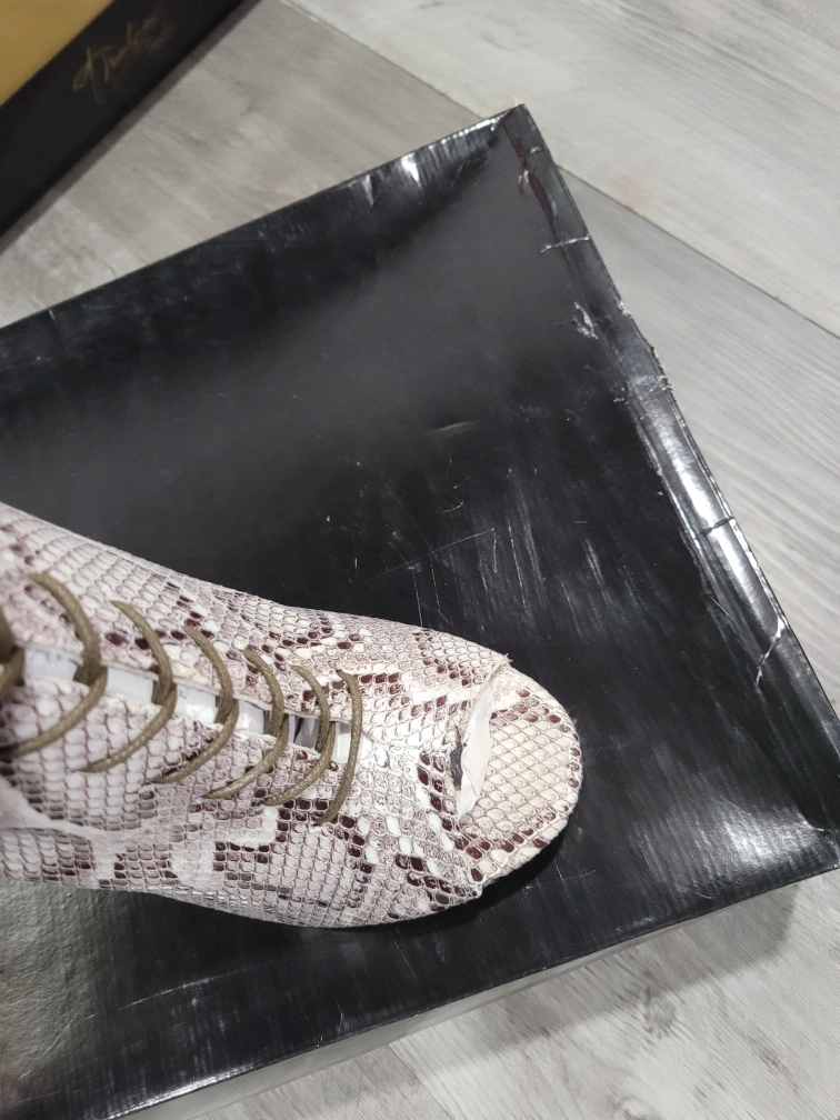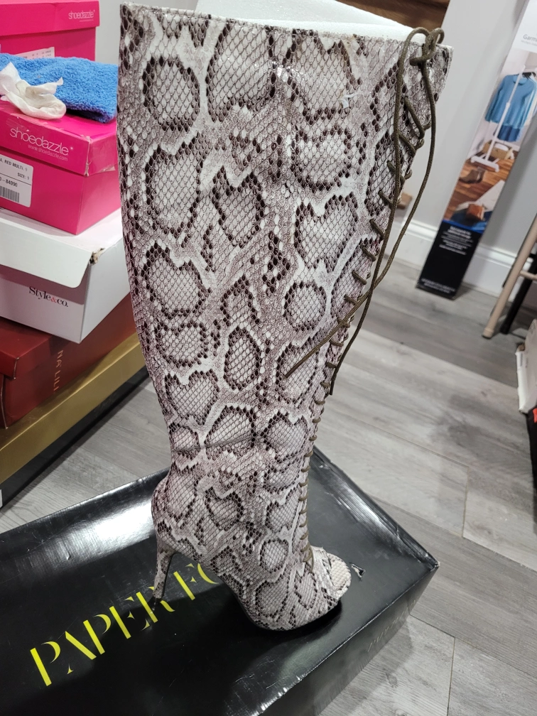 Selling a pair of Paper Fox Serina boots in off-white with a snakeskin pattern! These are a size 9 US and come in the original box. They are in great condition and ready for a new home!