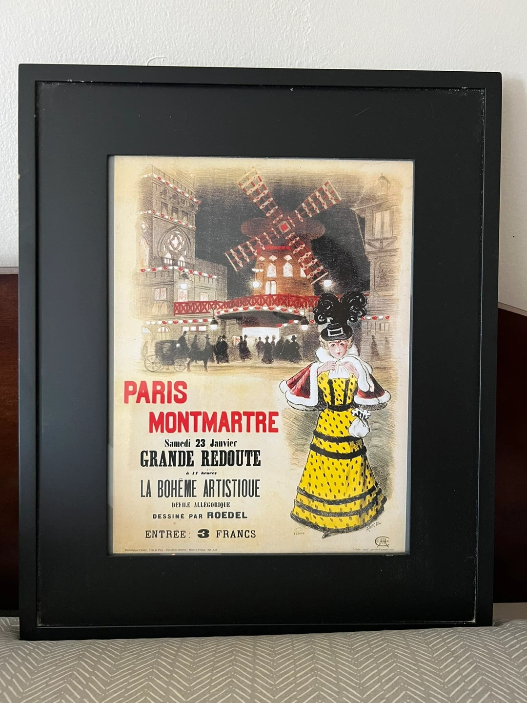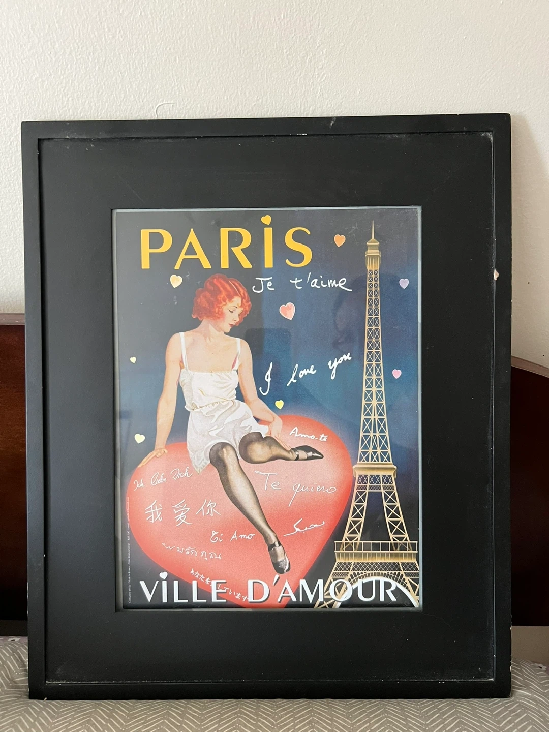 Framed Paris prints - both for $30 total - see photos for frame condition; has mounting hardware (frames are 18x15) Got these prints in Paris