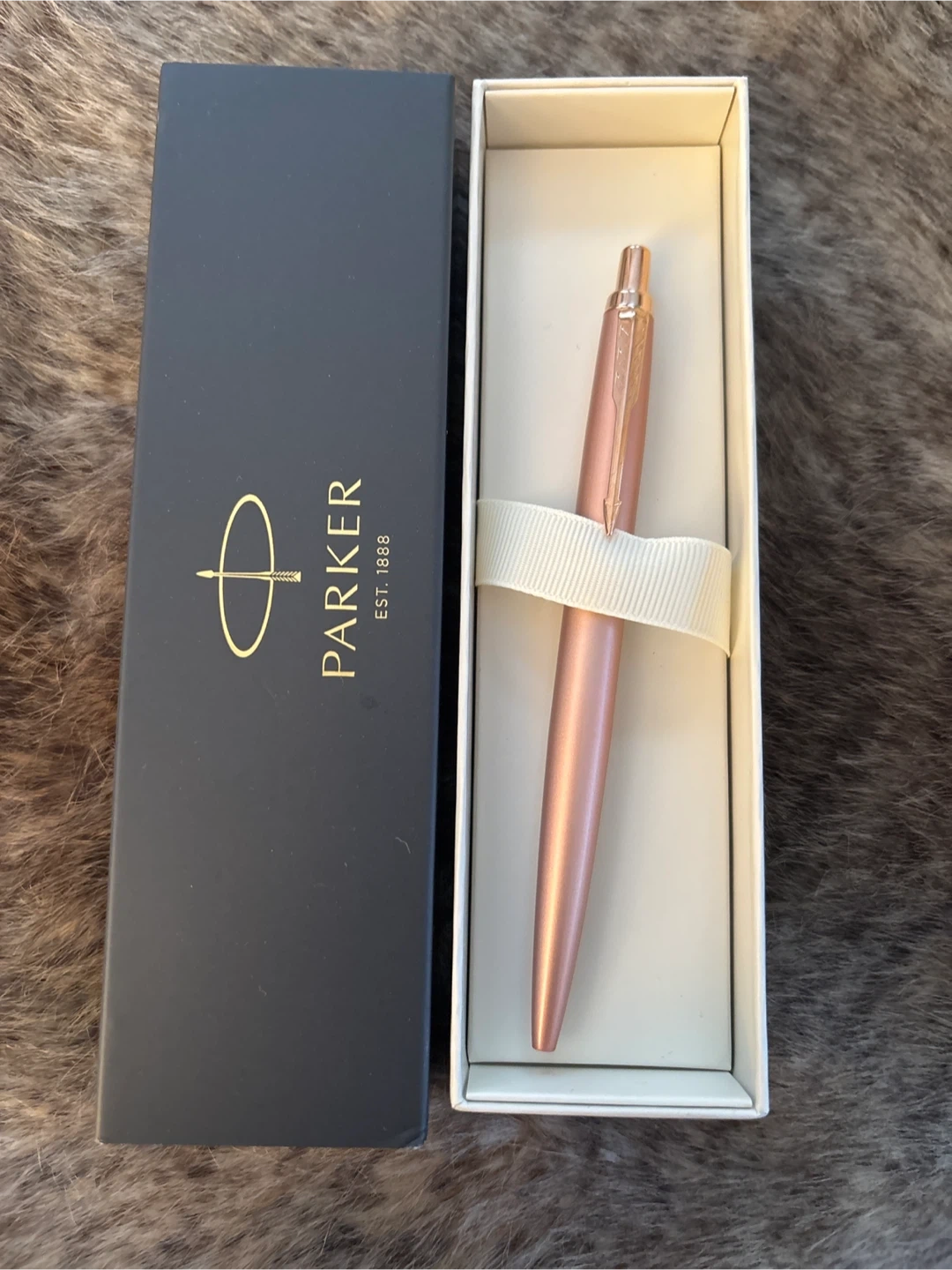 291Brand new Parker Jotter ballpoint pen in a beautiful rose gold color! It comes with its original box. The pen is in excellent condition and ready for a new owner who appreciates a smooth writing experience