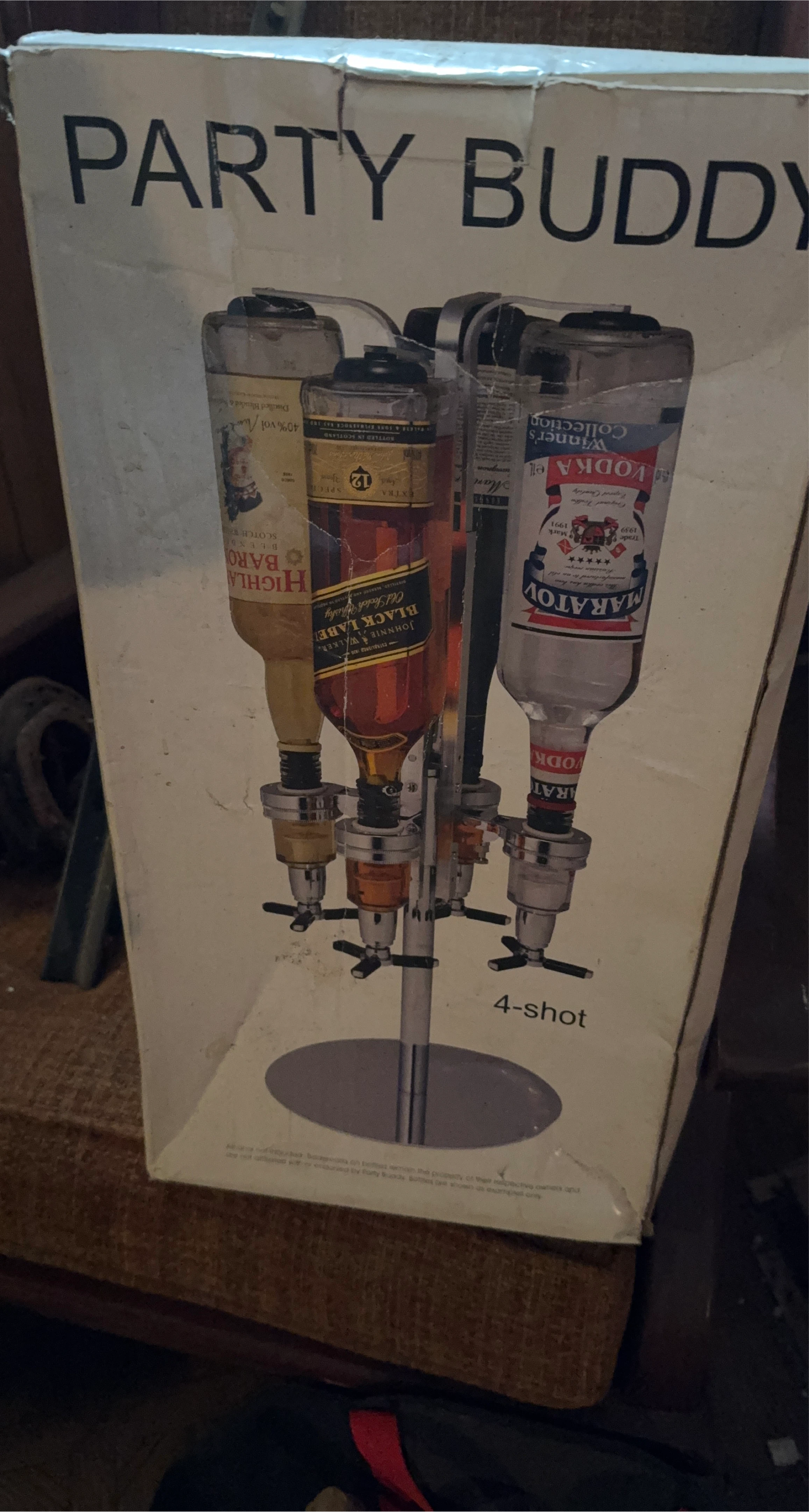 Selling a Party Buddy 4-shot liquor dispenser! It's in its original box. Perfect for parties and gatherings!