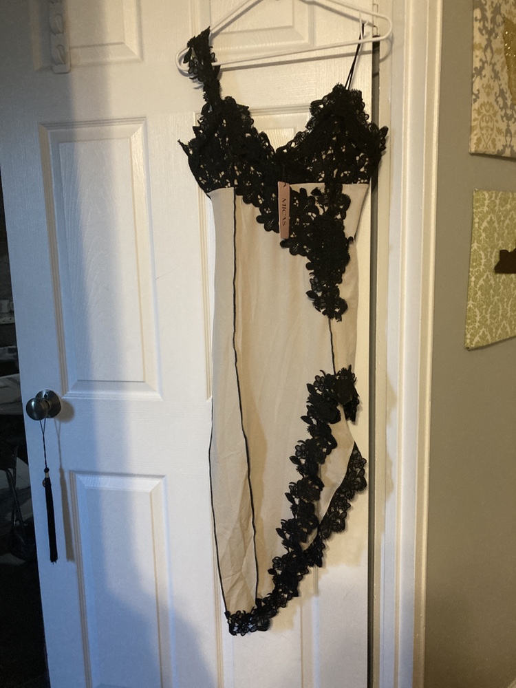 Beige and black party dress. Brand new -never wore.