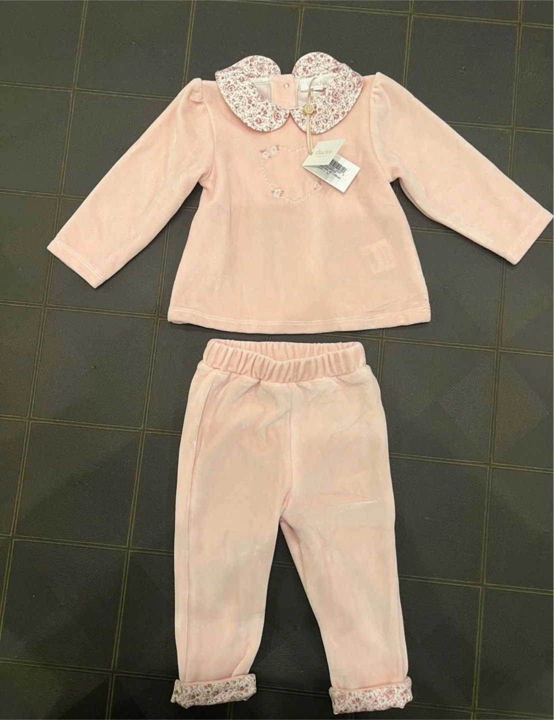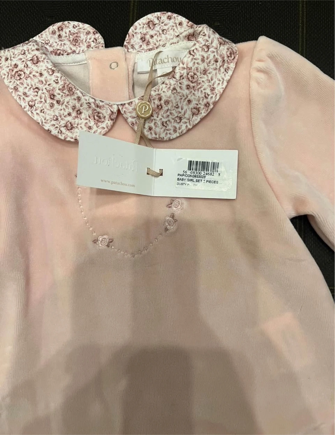 This adorable Patachou baby outfit set is in a lovely dusty pink color! It includes a top and pants, perfect for your little one. The set is brand new with tags, ready to wear. It's a sweet and stylish choice for any occasion!