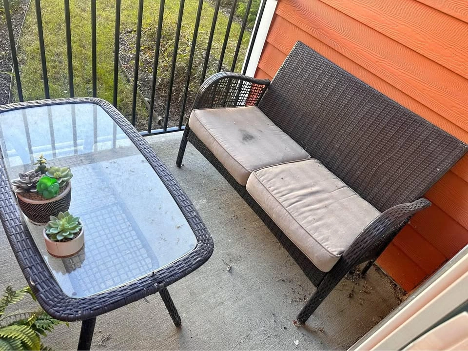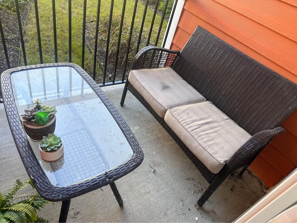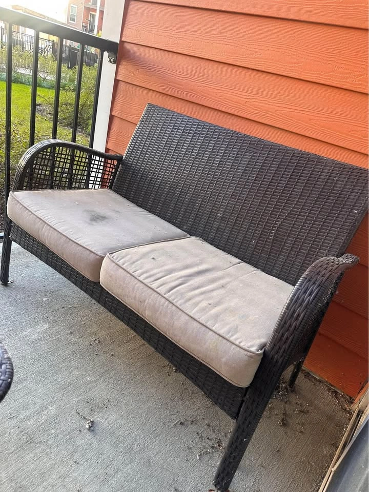 Some stains and holes on the cushions but can be replaced. Wear and tear from weather.