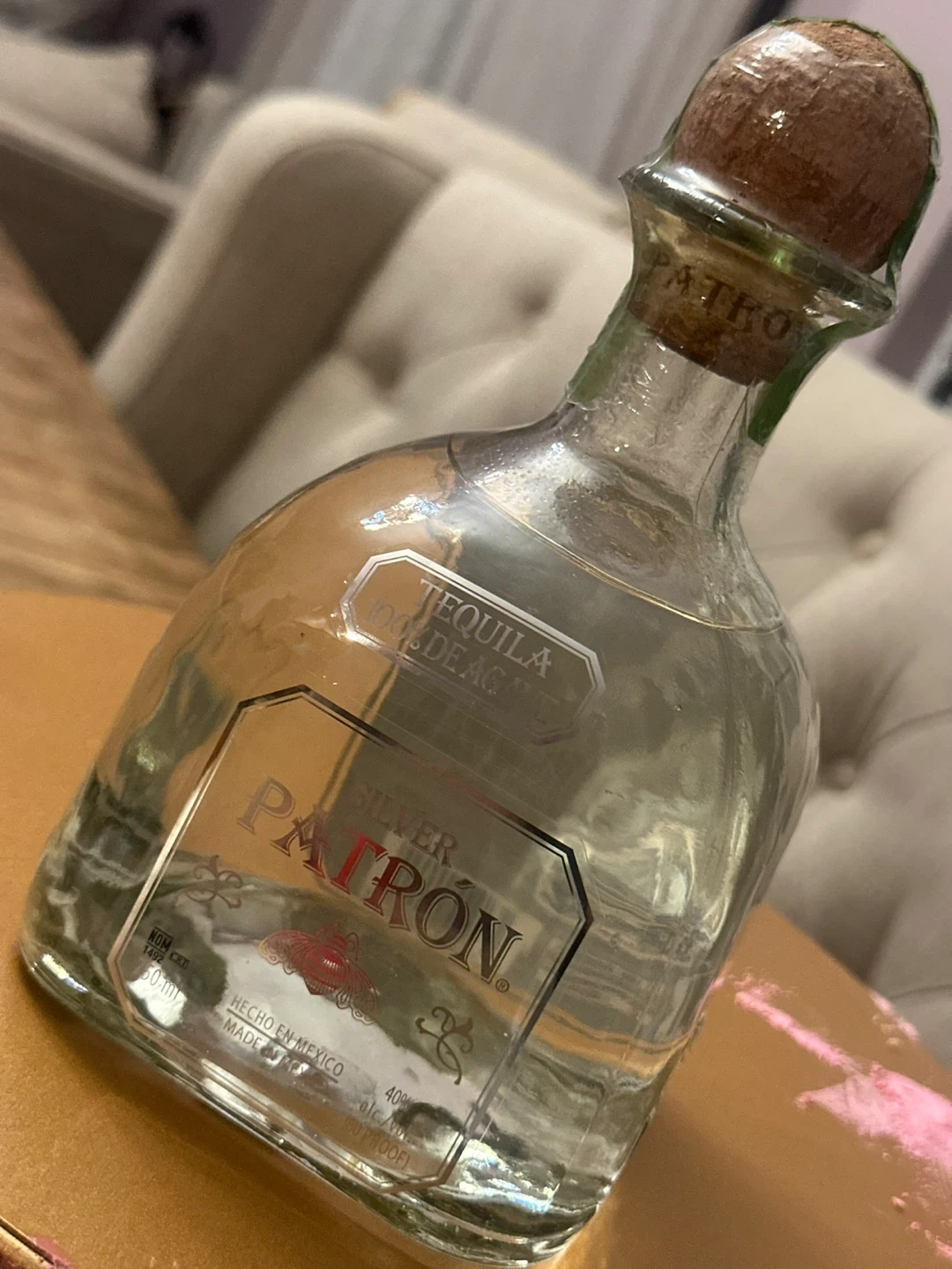 Selling a bottle of Patron Silver Tequila. It's a clear, high-quality tequila made from 100% agave. The bottle is 50ml and has 40% alcohol content