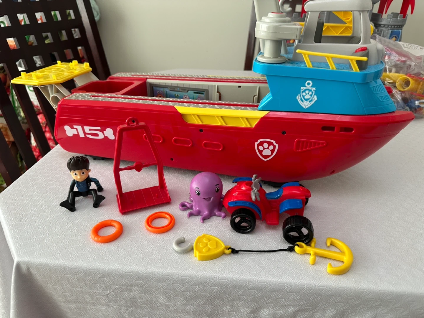 Paw Patrol Sea Patroller boat with accessories! Includes Ryder figure, octopus, ATV, life preservers, and anchor
