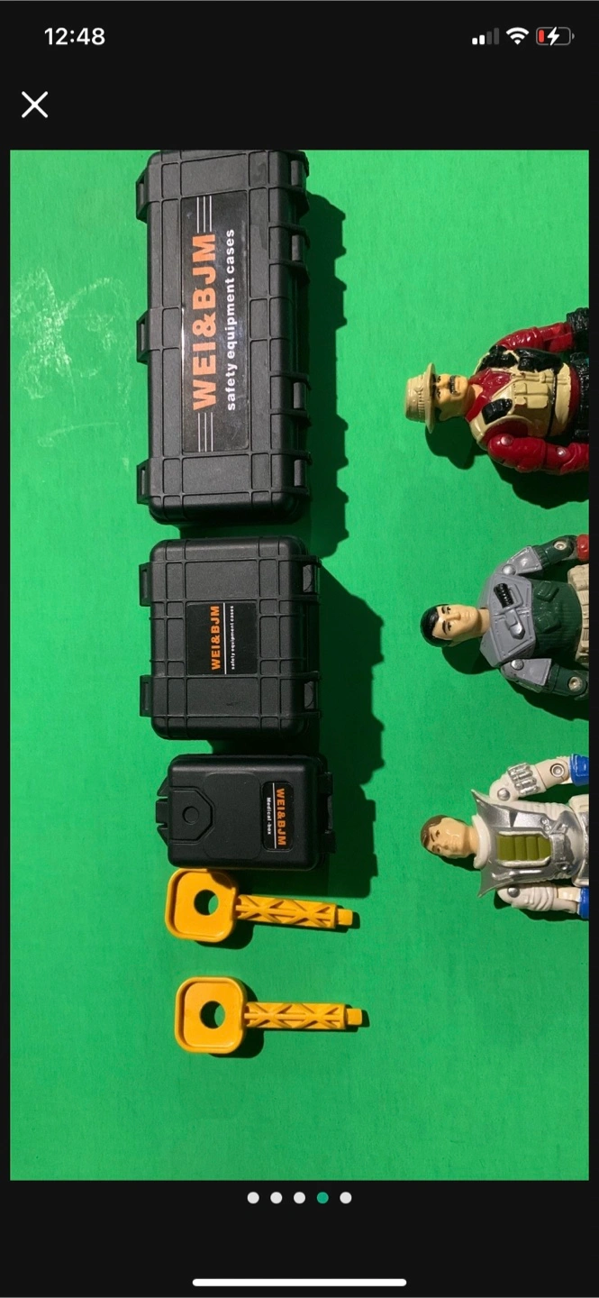 Three Wei&BJM hard plastic cases. Two yellow plastic keys. Collectible items.