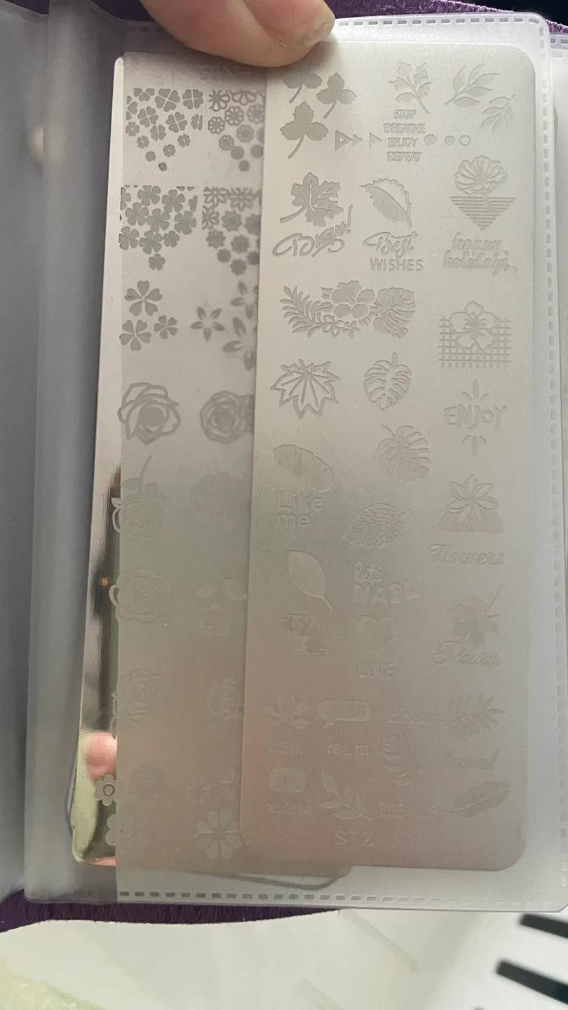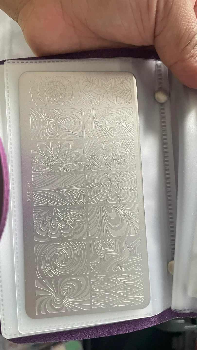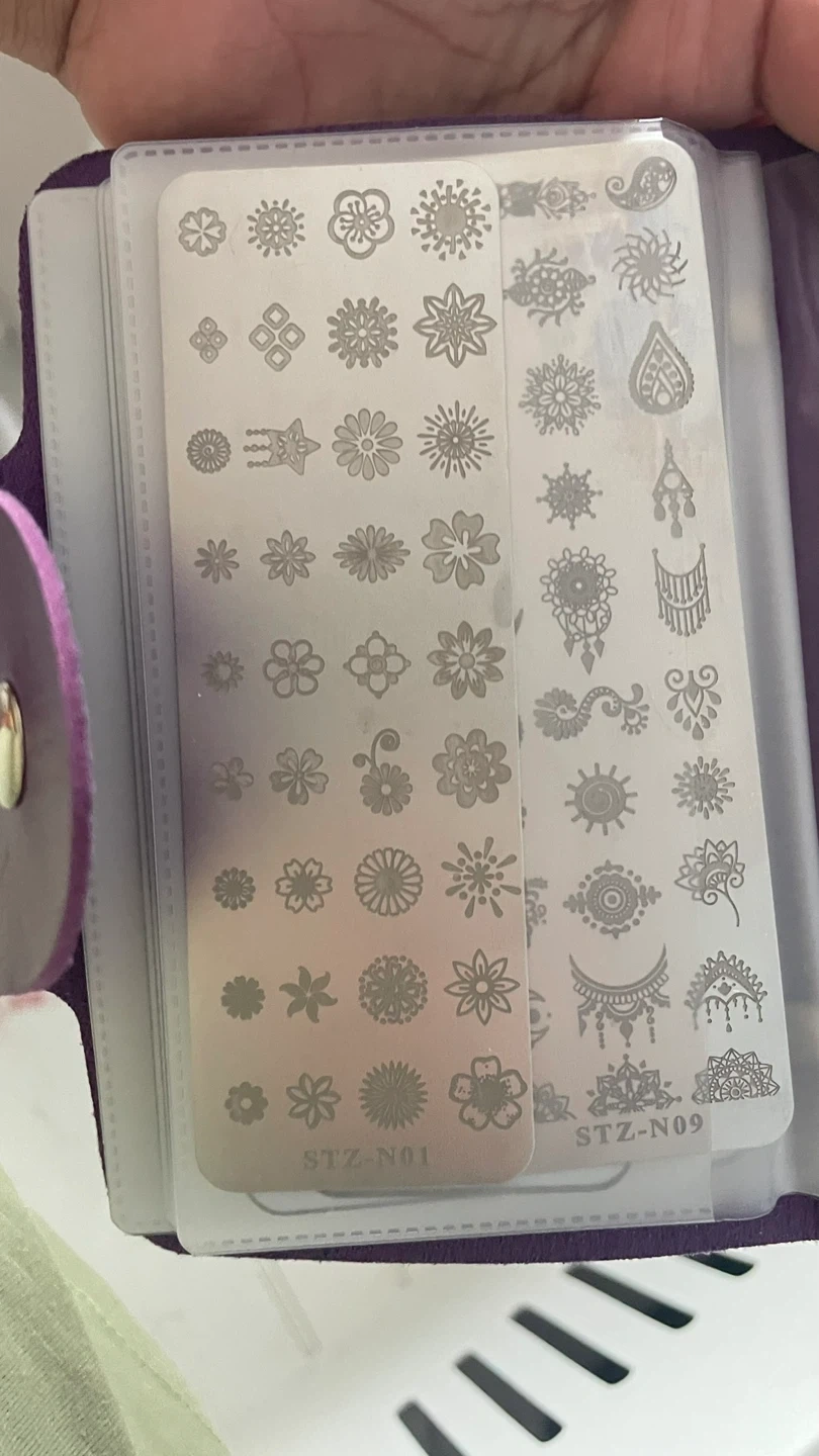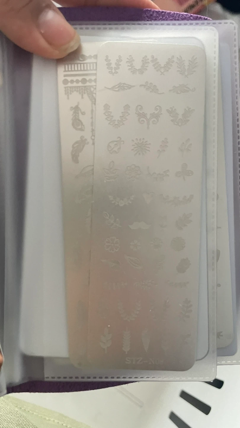 This is a set of nail art stamping plates with various designs. Perfect for creating unique and intricate nail art at home