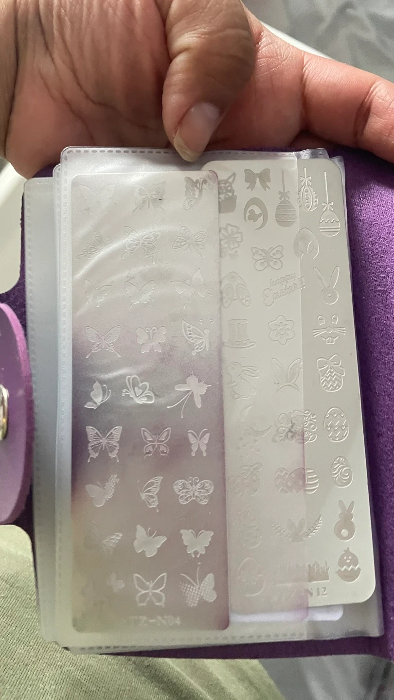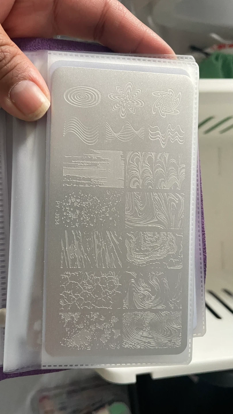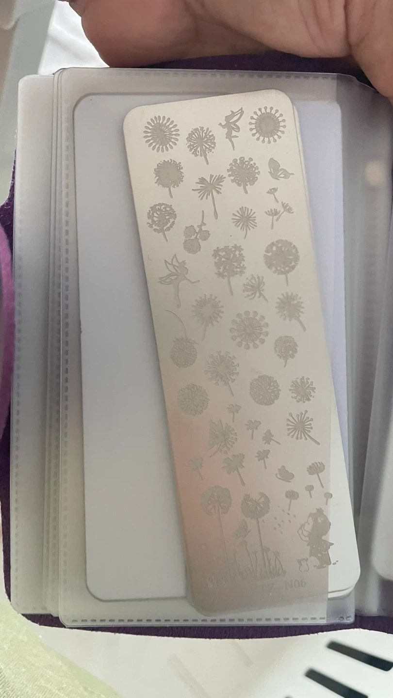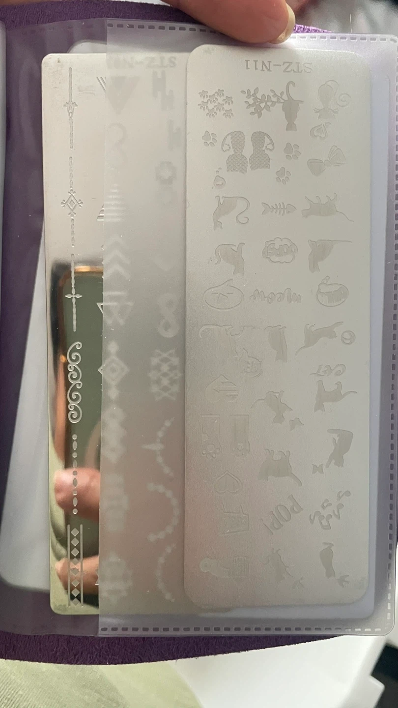This is a set of nail art stamping plates with various designs. Perfect for creating unique and intricate nail art at home