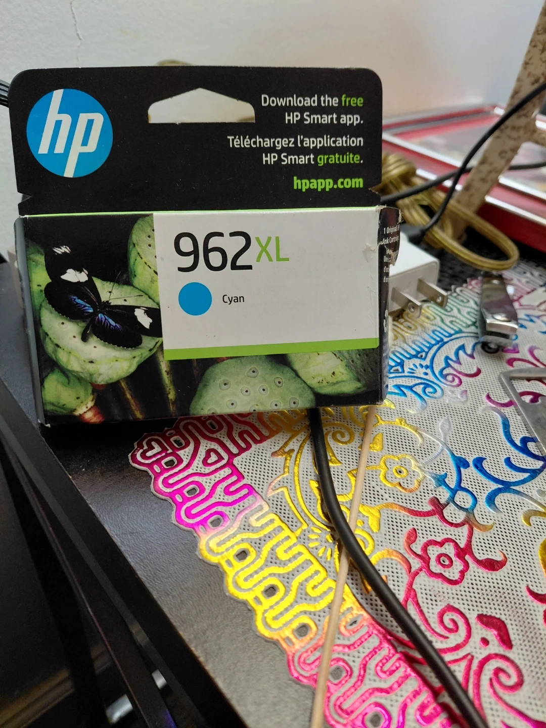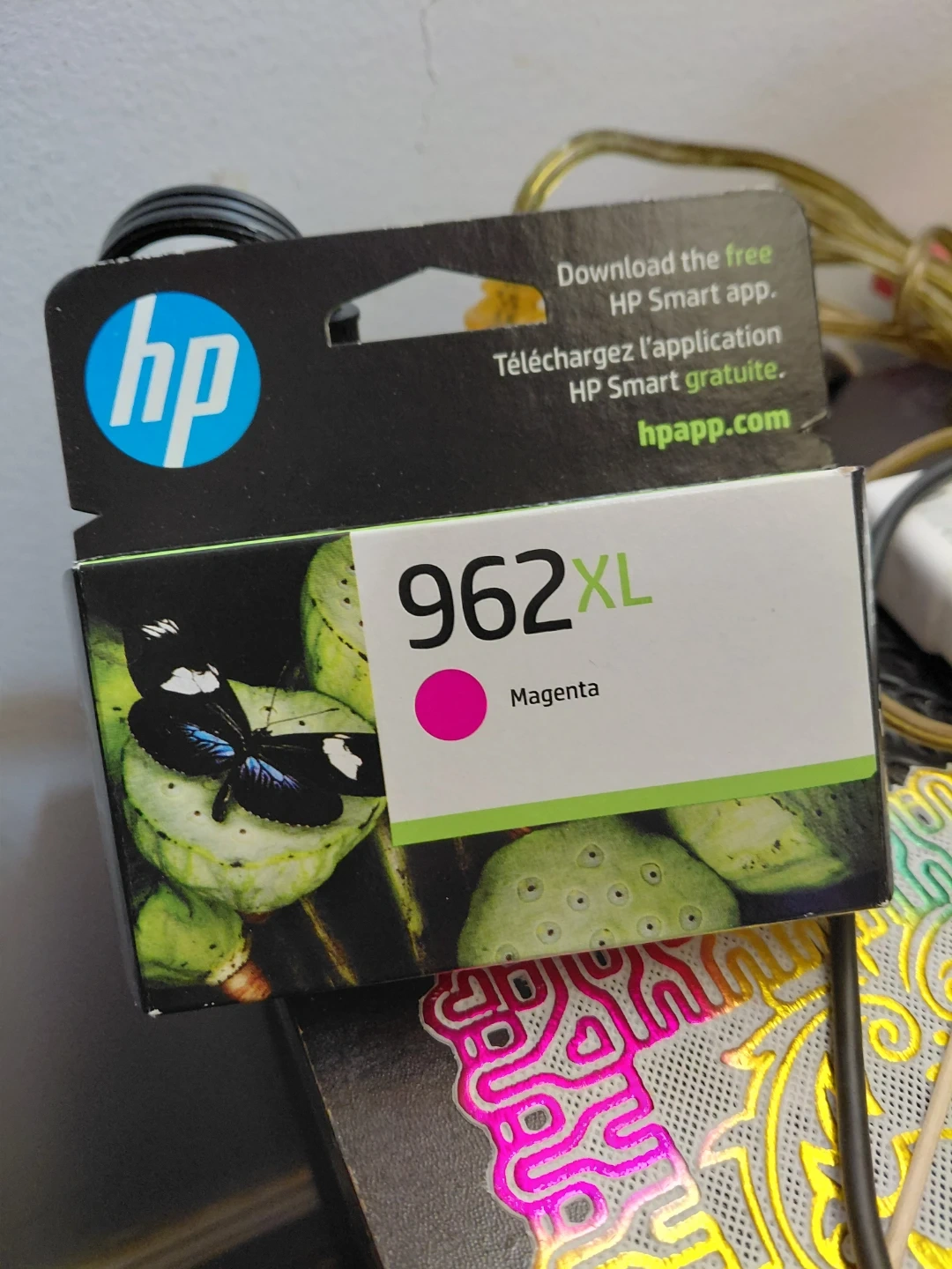 HP 962XL high-yield ink cartridges. Includes one magenta and one cyan cartridge. These are genuine HP ink. $15: each