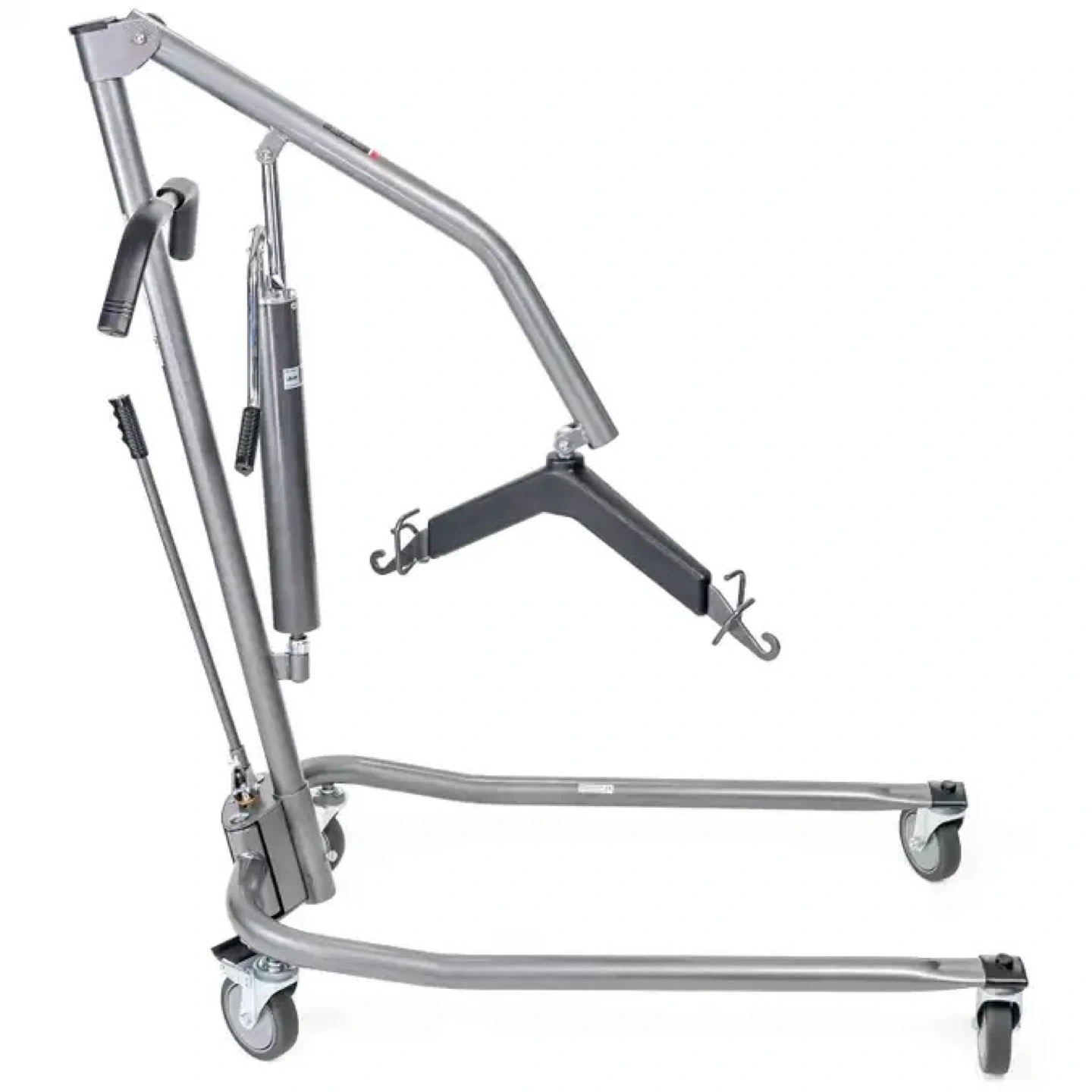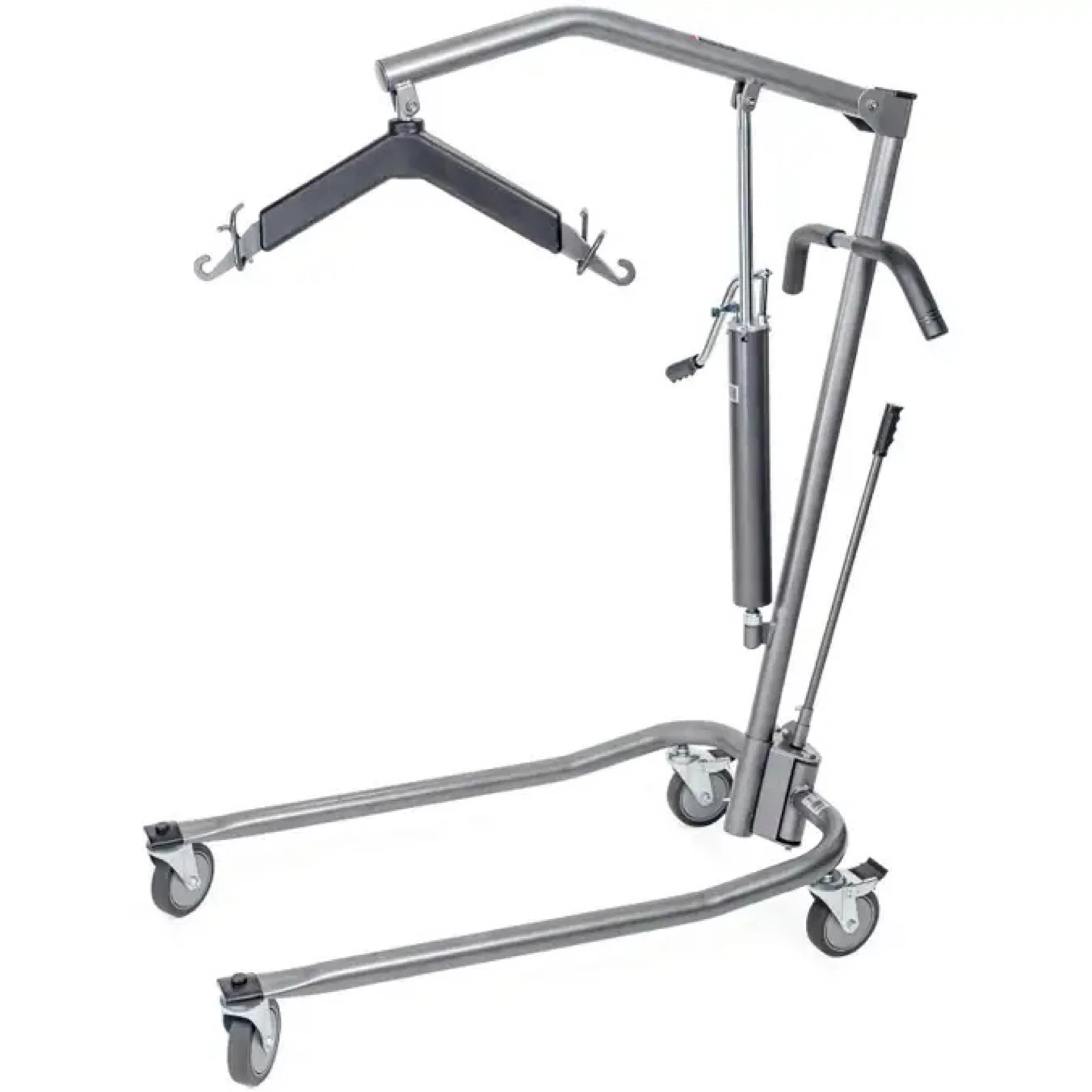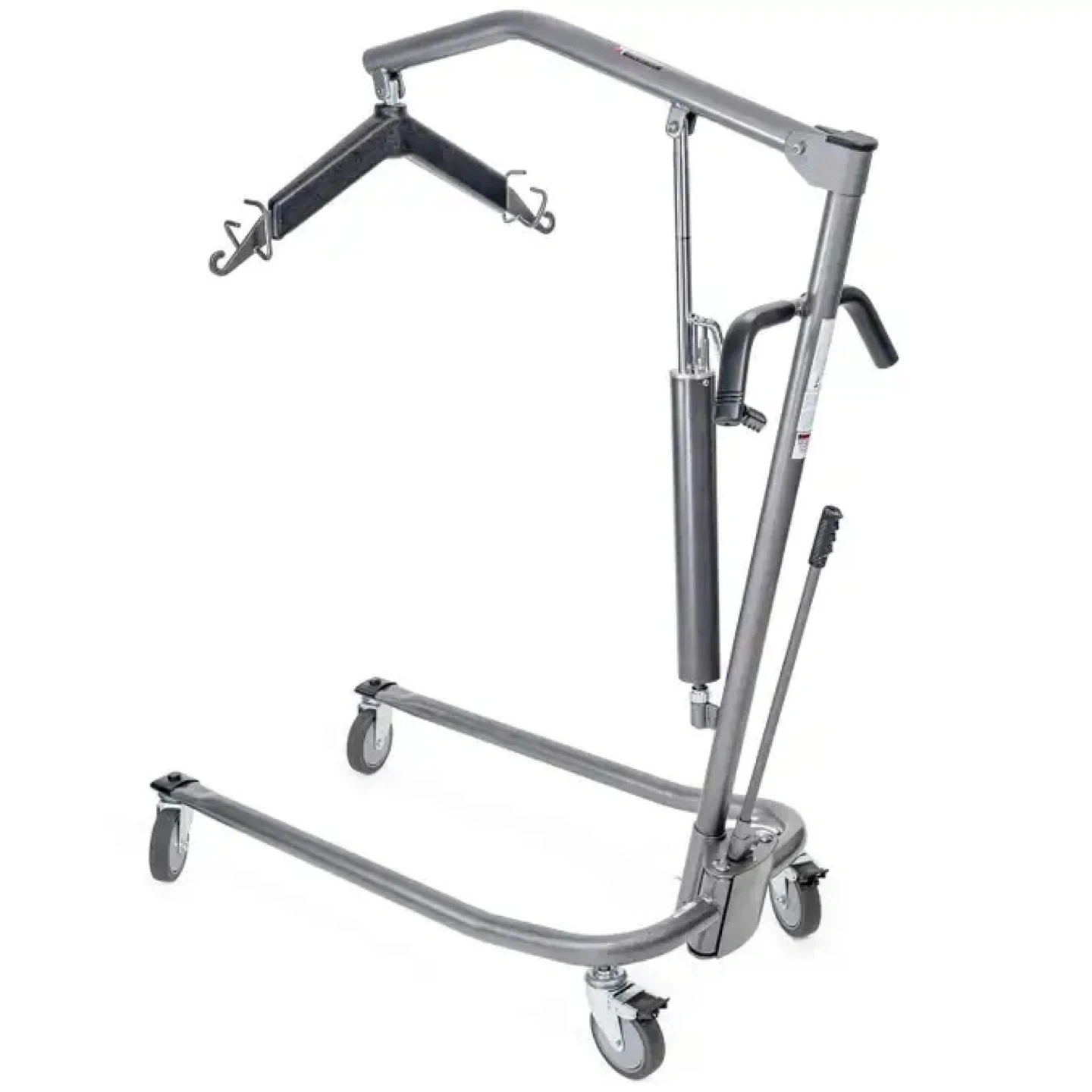Deluxe Hydraulic Patient Lift by Drive Medical. Features a sturdy metal construction and a hydraulic lift mechanism for easy patient transfer. Swivel casters offer smooth maneuverability. It's designed for safe and efficient patient lifting.