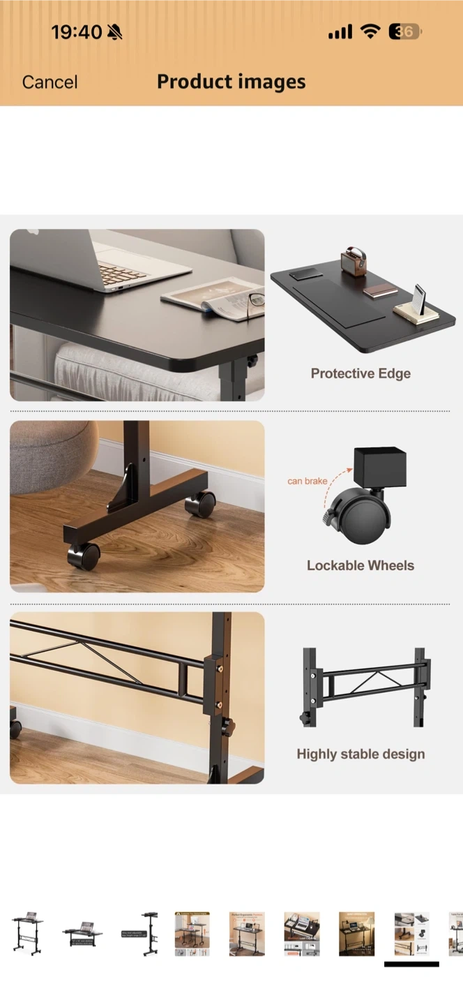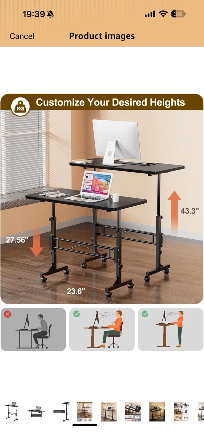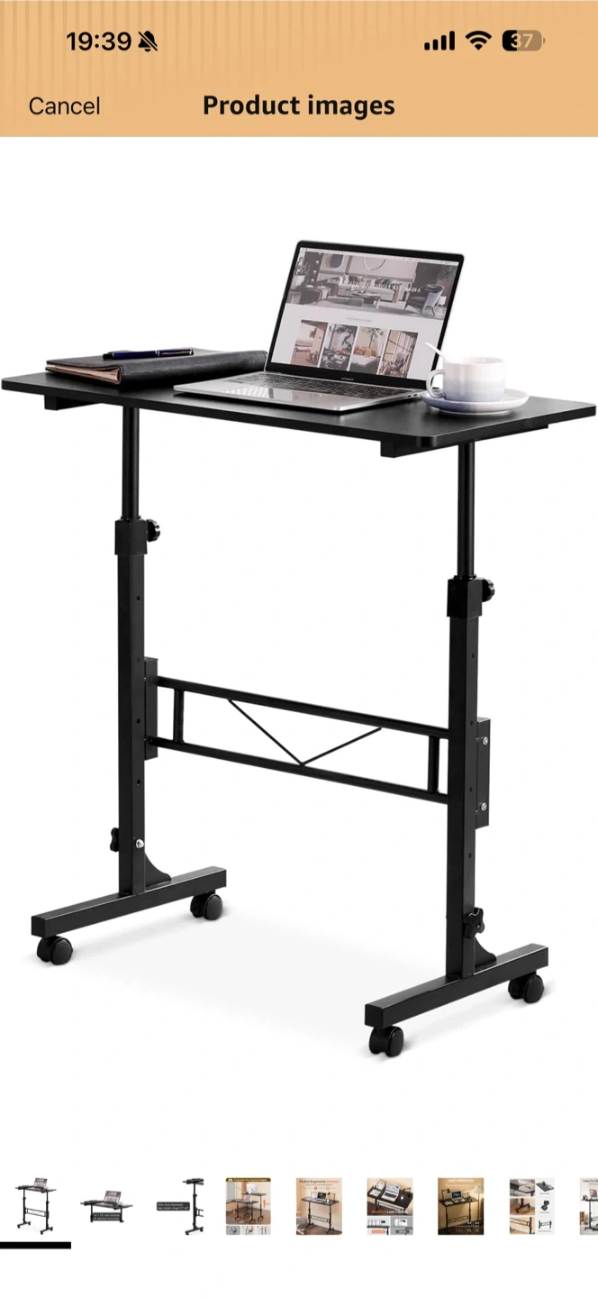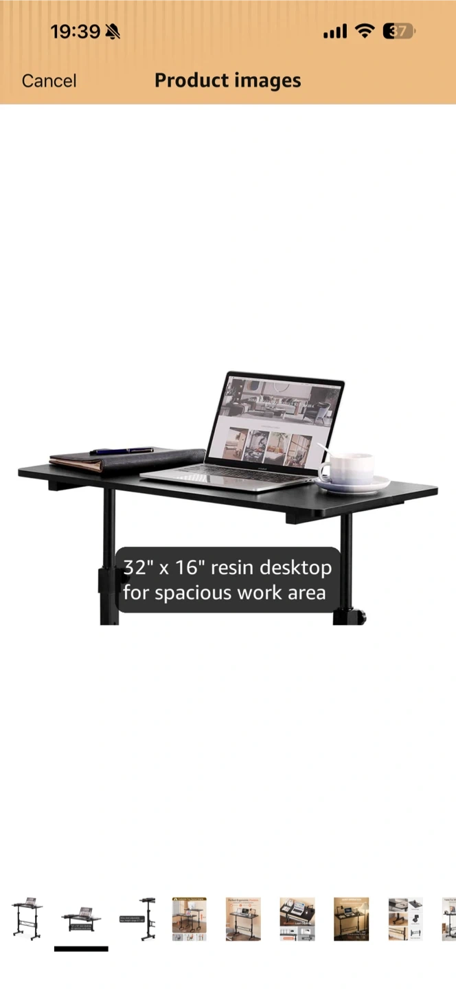 This is a versatile standing desk, perfect for multitasking and enhancing your workspace. It features lockable wheels for easy mobility and a highly stable design. The desktop measures 32" x 16" and is made of resin, offering a spacious work area. Customize your desired height with ease!