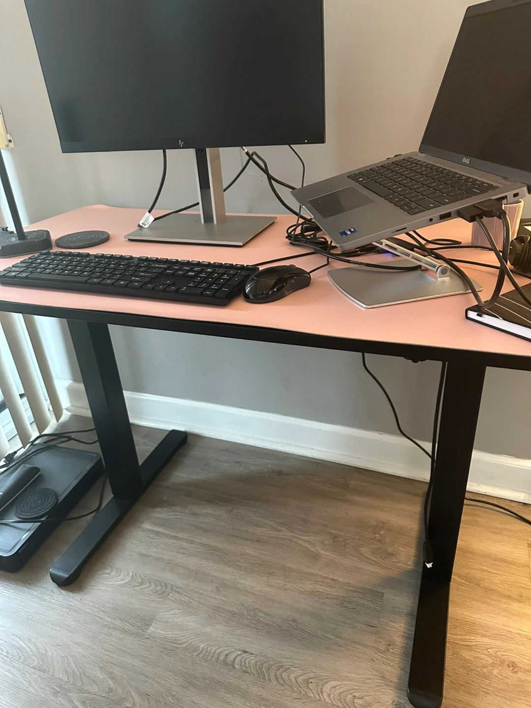 Adjustable height standing desk. Minimal wear. With free headphones stand and mug holder.