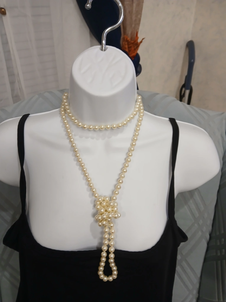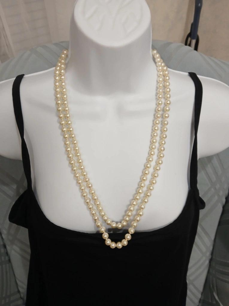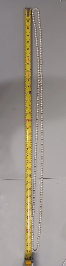 This is a beautiful pearl necklace that measures 35 inches in length. It's in great condition and ready to wear!