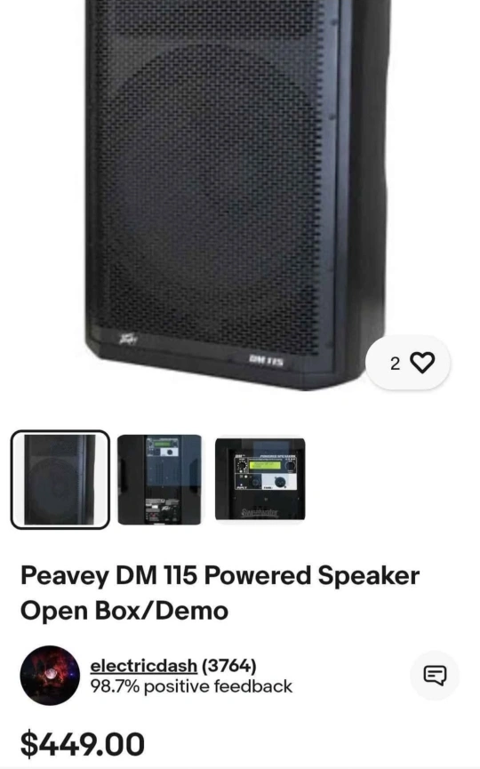 Selling a Peavey DM 115 powered speaker. It's in good condition and ready to amplify your sound! Originally bought for $449