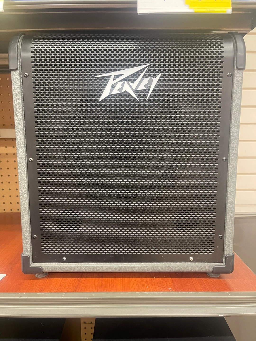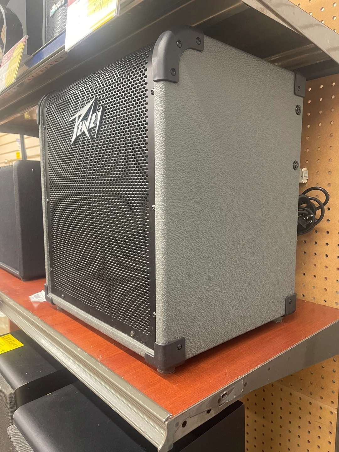 Gray bass amplifier. Features multiple knobs and inputs. Chromatic tuner. Power switch. Good condition. We offer layaway, 10% down. Any questions message us *Need valid ID to buy merchandise*