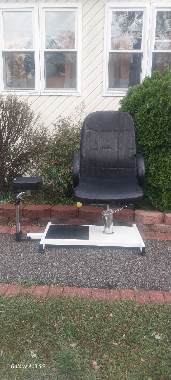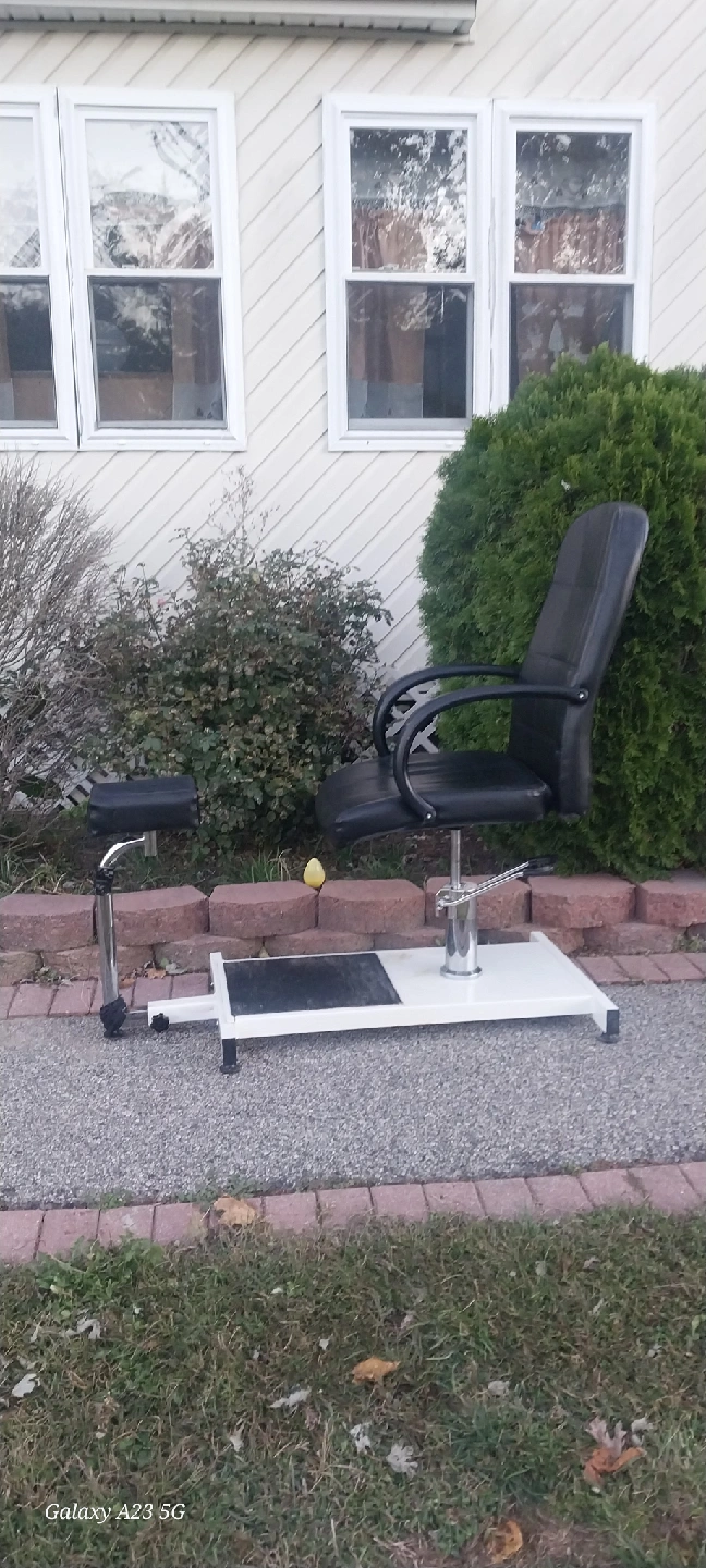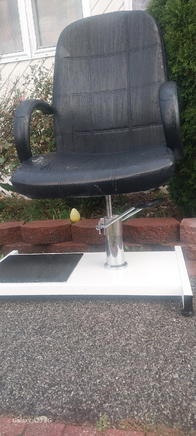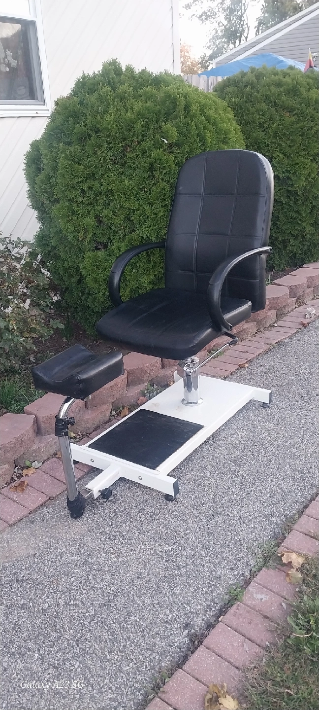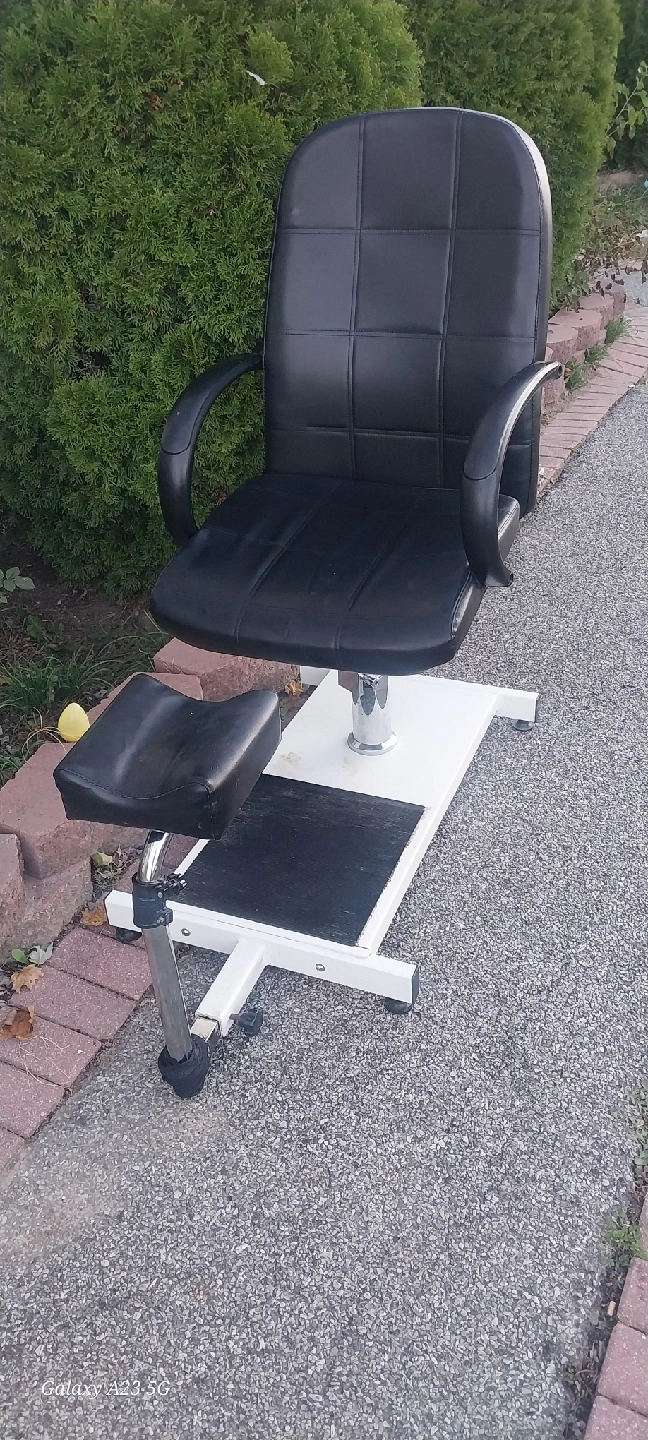10no new Selling a pedicure chair with a footrest. It's in good condition and ready for use! The chair is black and features a comfortable design for clients. Perfect for a salon or home setup! Silla para Cortar pelo o pedicure Está en buen estado no es nuevo Mandar mensaje persona interesada no hablo inglés pero puedo hablar por un traductor