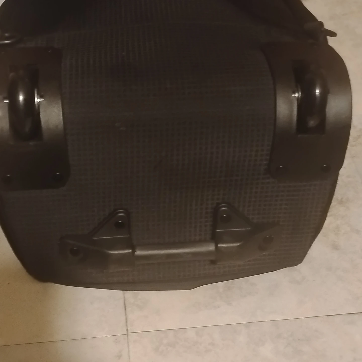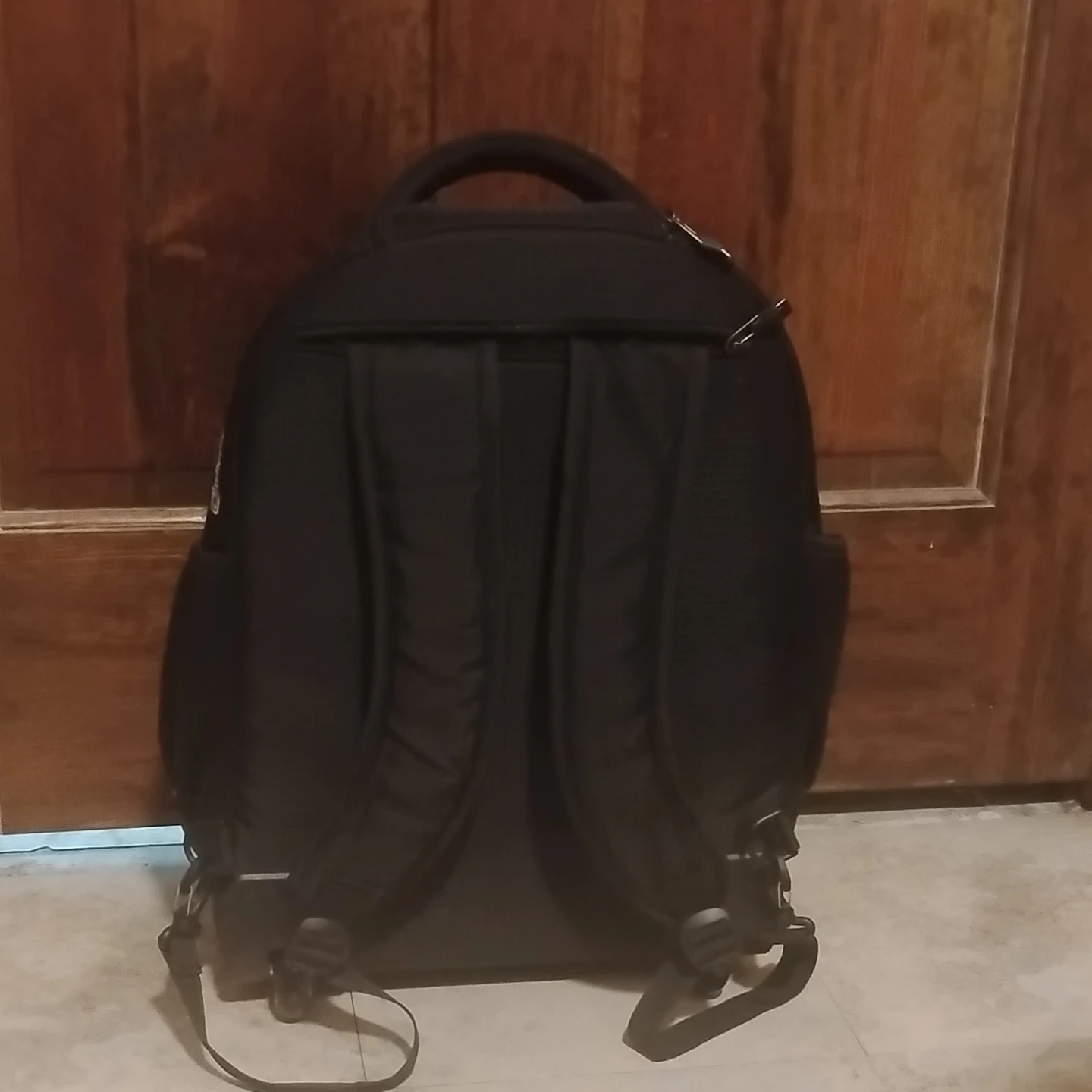 Black OGIO rolling backpack. It has a telescoping handle and wheels for easy transport. Multiple compartments and pockets offer plenty of storage. It's great for travel!