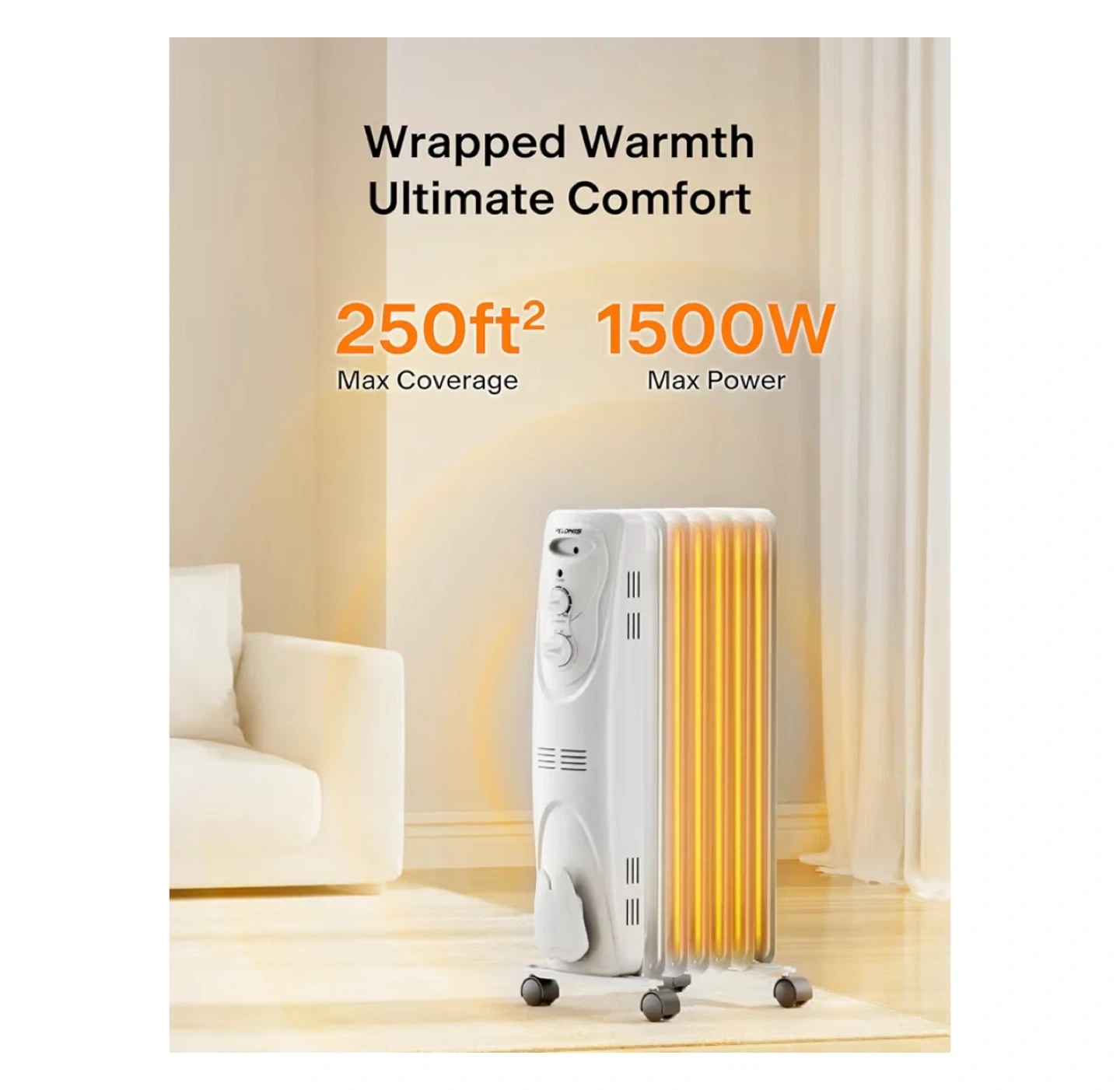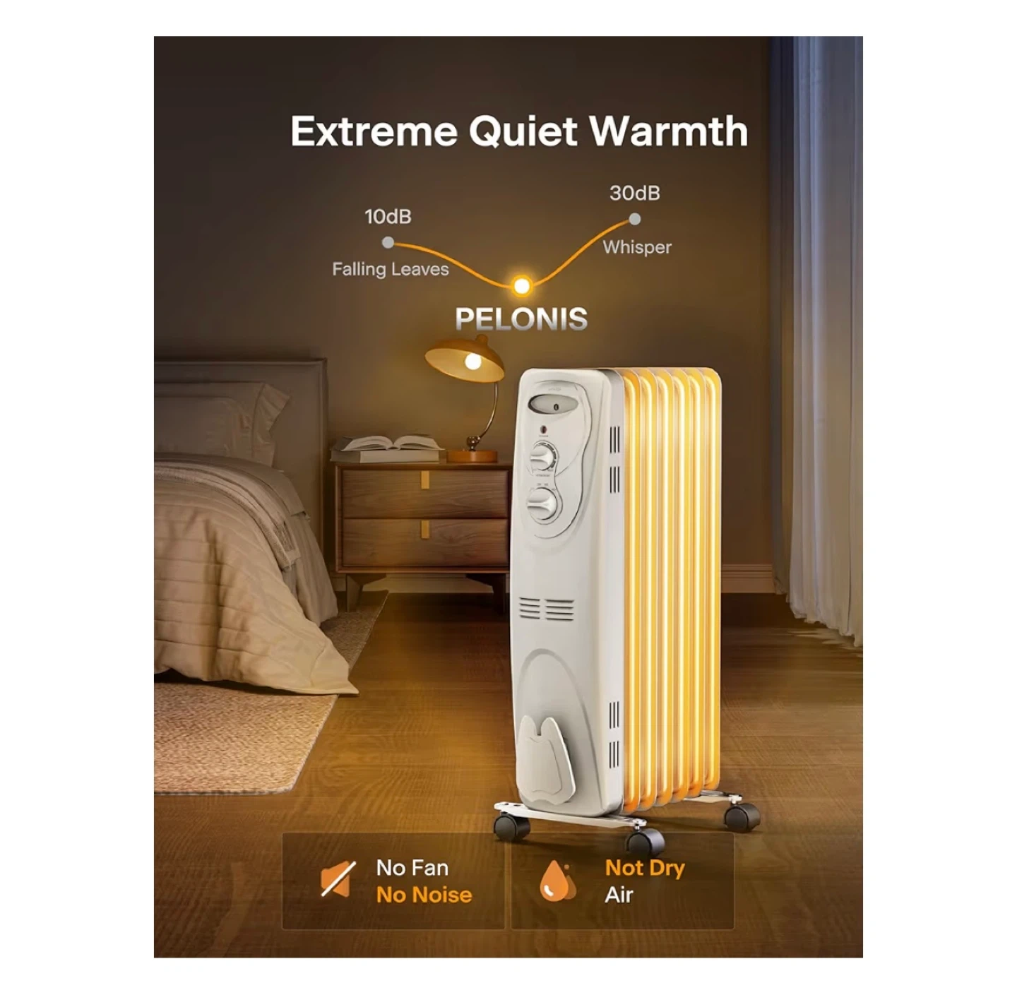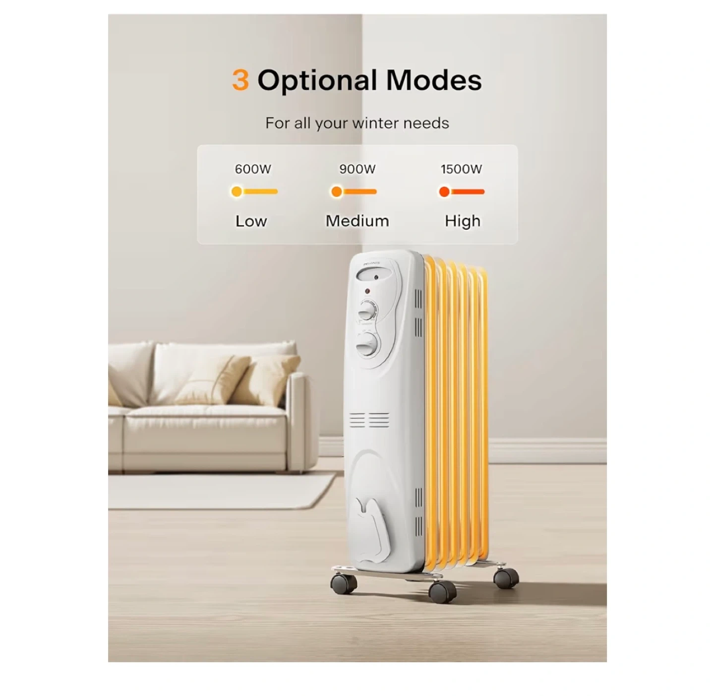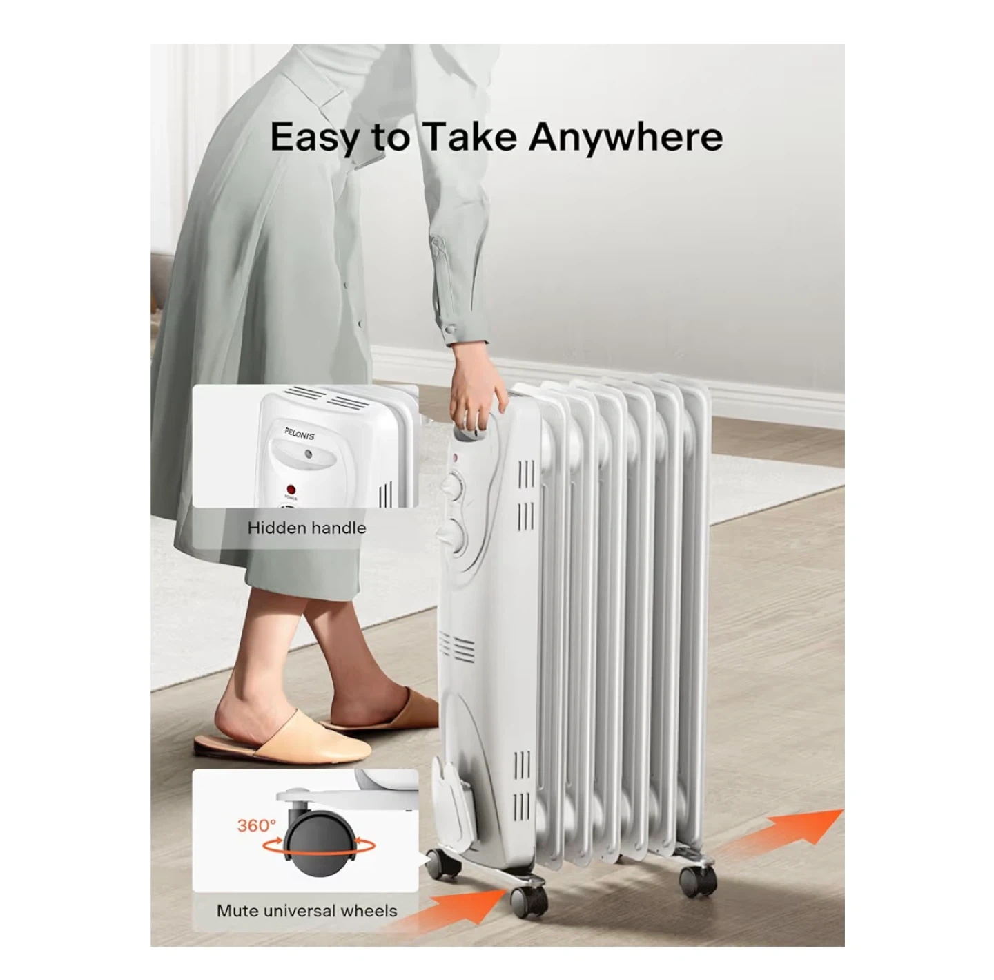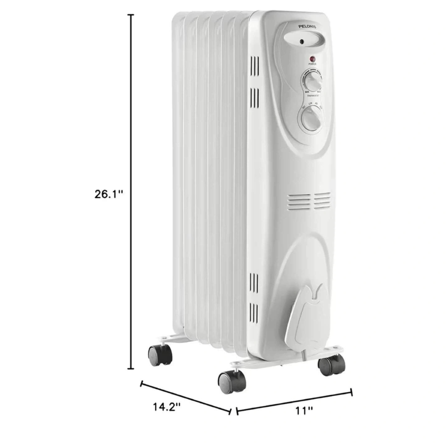 39This PELONIS oil filled radiator heater is perfect for adding some extra warmth to your space! It features: - Extreme quiet warmth - No fan, no noise - Not dry air - 3 optional modes (600W, 900W, 1500W) - Max coverage 250ft² - Max power 1500W Dimensions: - 26.1" height - 14.2" depth - 11" width