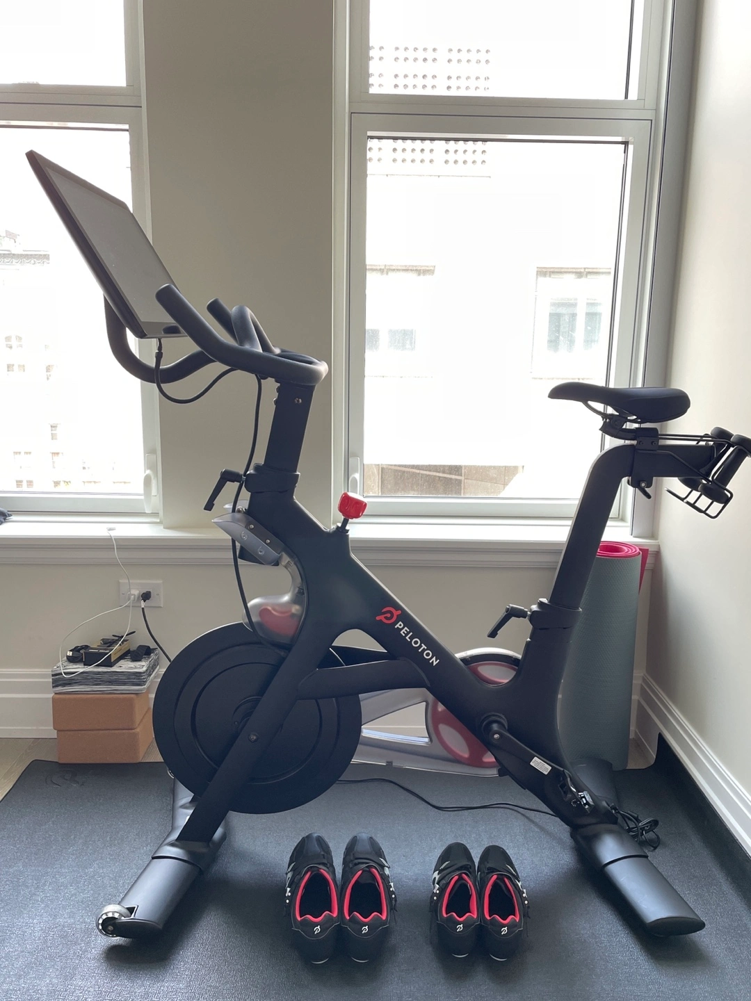 Shoes x 2 pairs (40, 45), heart monitor, light dumb bells and mat included. Used for less than 700 rides. No defects. No recalls.