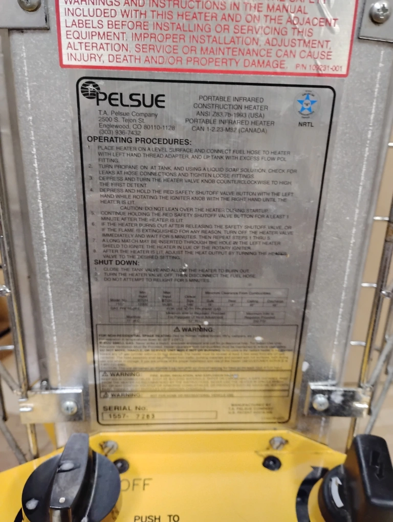 Selling a Pelsue portable infrared construction heater. Please refer to the images for operating procedures and warnings. great camping heater