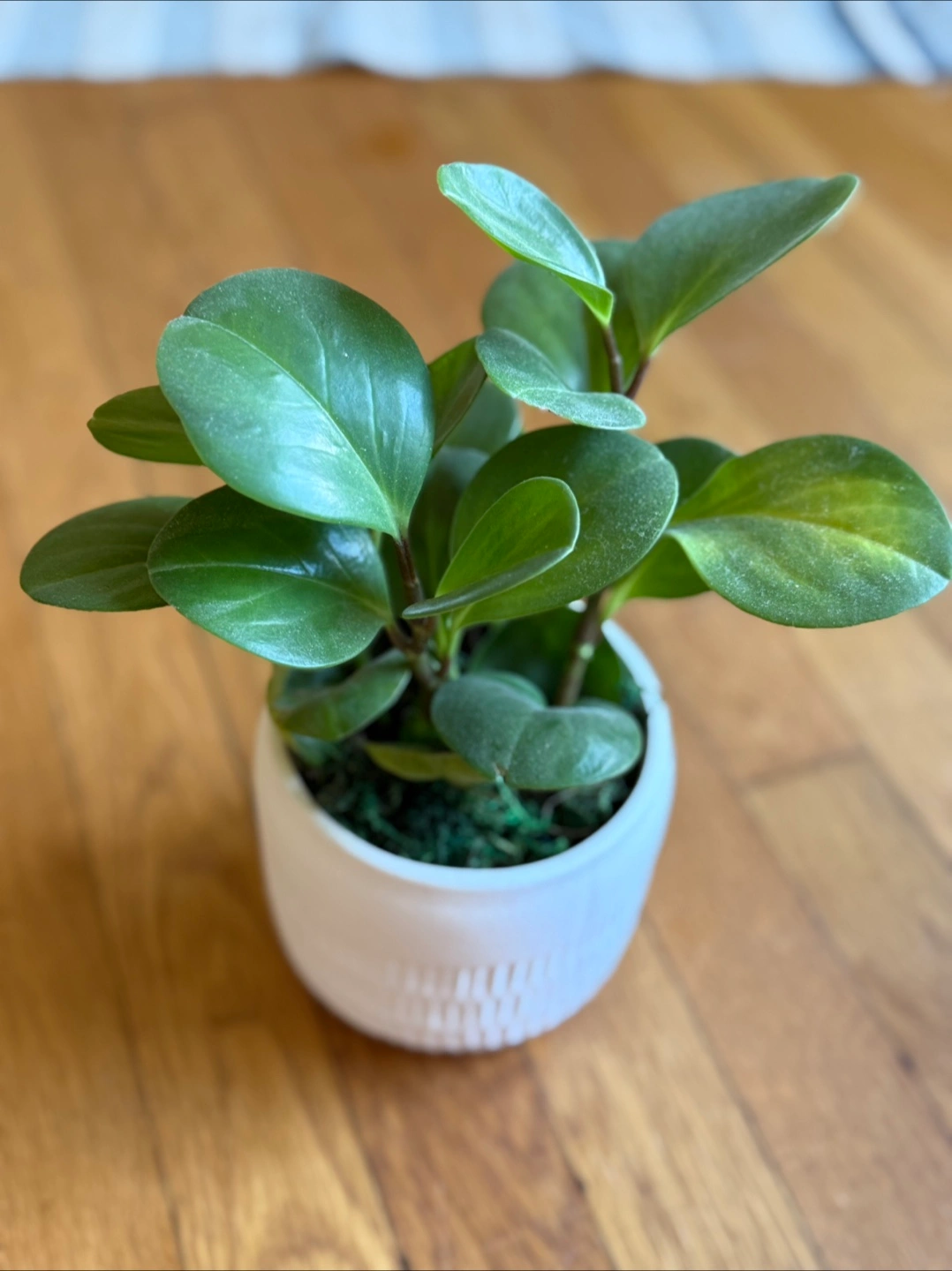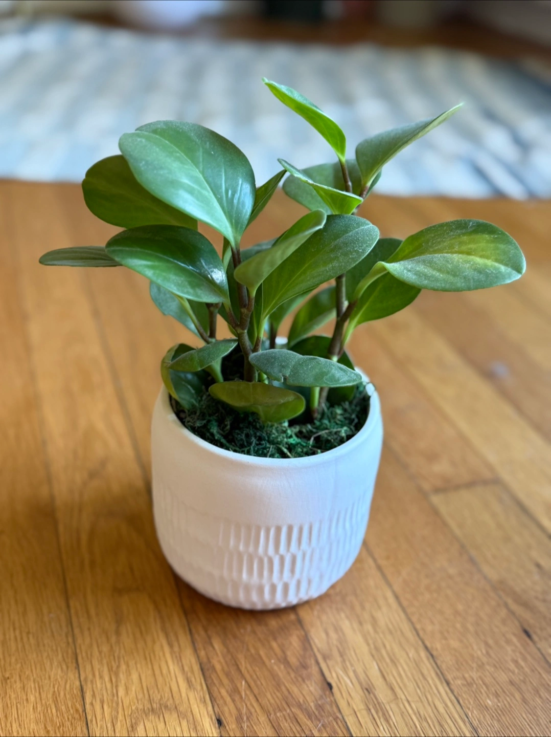 42Healthy, lush Peperomia obtusifolia in modern white textured pot. 🪴 Compact, non-toxic, pet-safe 🌿 Perfect for shelves, desks, or gifts 🌞 Thrives in bright, indirect light Pickup in Northbrook I Cash or Zelle