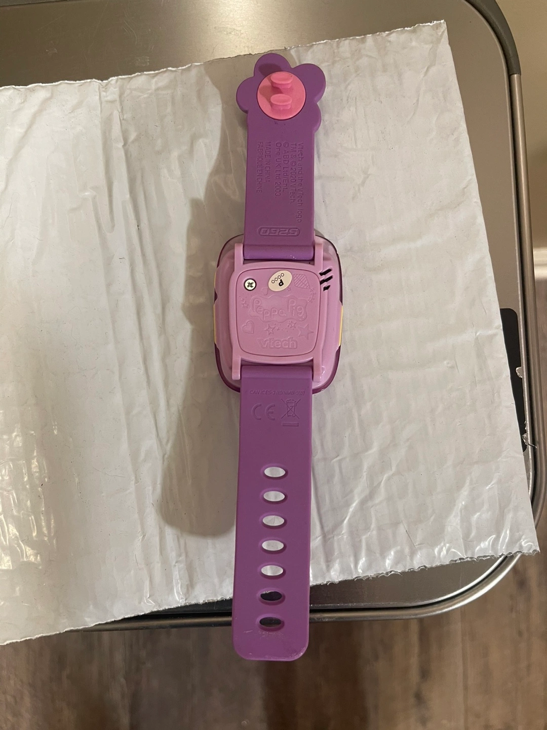 15Purple Peppa Pig watch. Features a flower-shaped button. Great for kids.