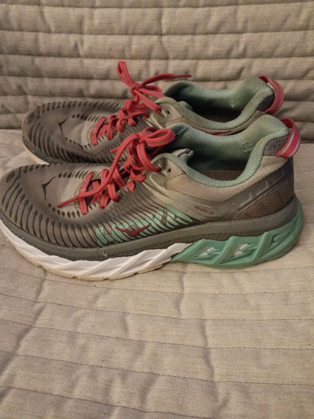 Selling a pair of Hoka One One Arahi 2 running shoes. They are a US size 8. Great for running or everyday wear!